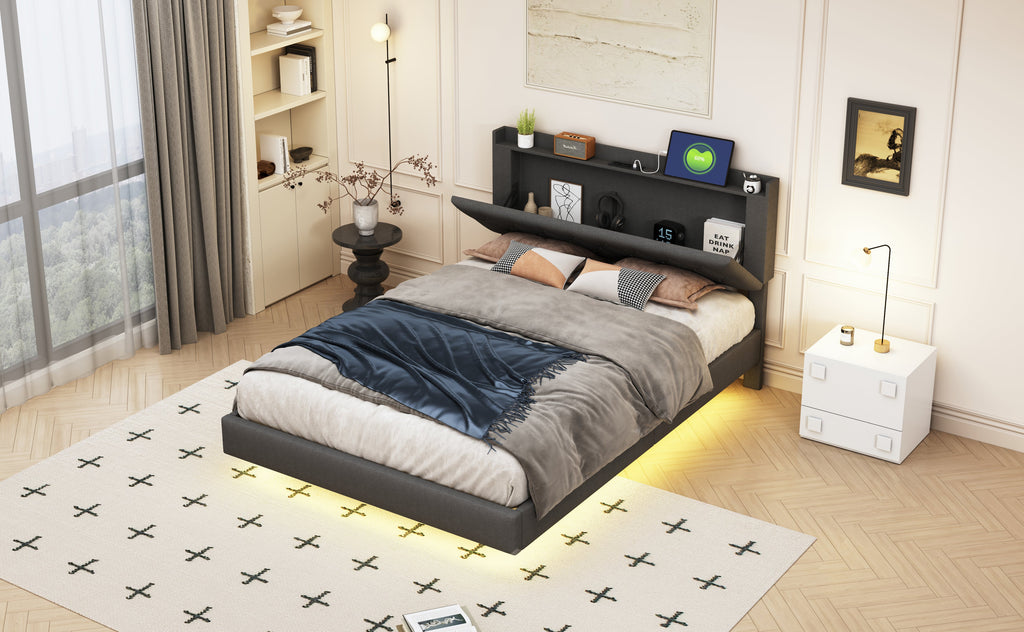 Indulge in the soft glow of the integrated LED lights, perfect for creating a cozy ambiance for relaxing after a long day. A built-in charging port allows you to conveniently charge your devices overnight without the hassle of searching for outlets. The fold-out bedside storage provides ample space to keep your essentials within easy reach, declutter your bed, and organize your space.