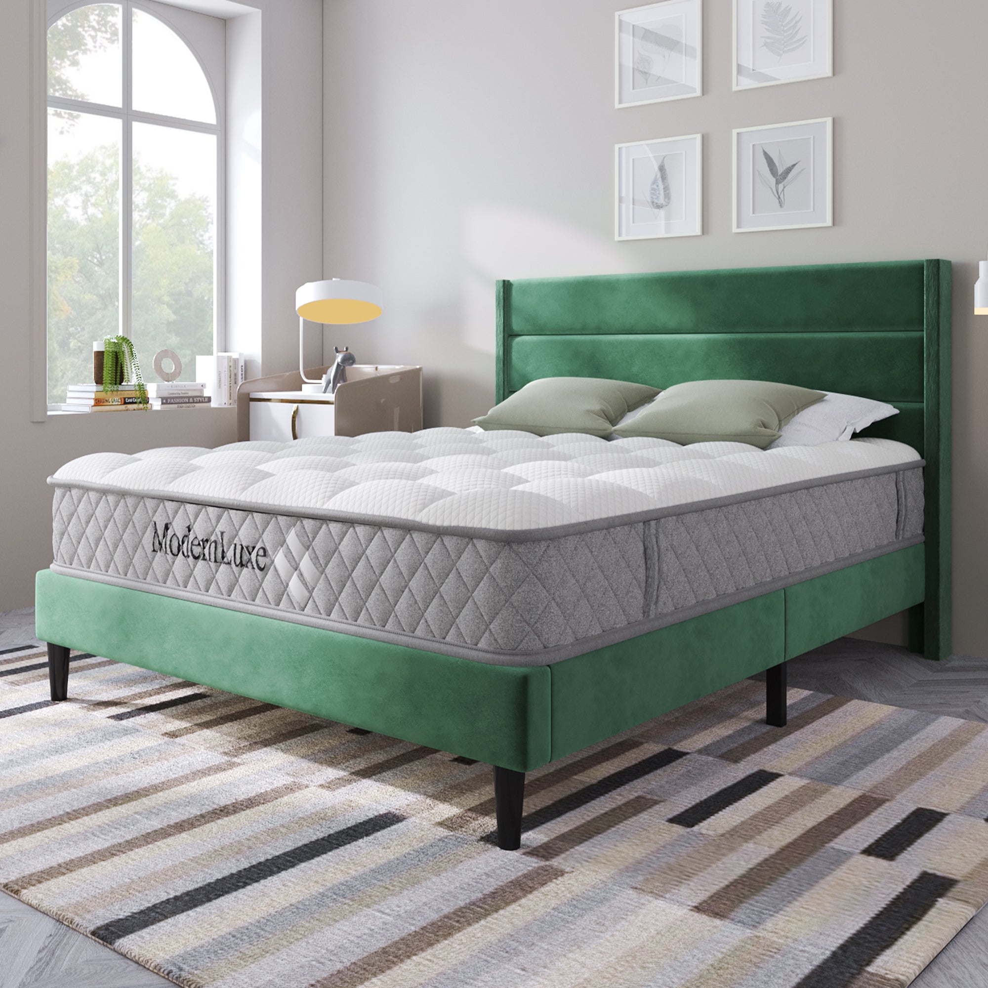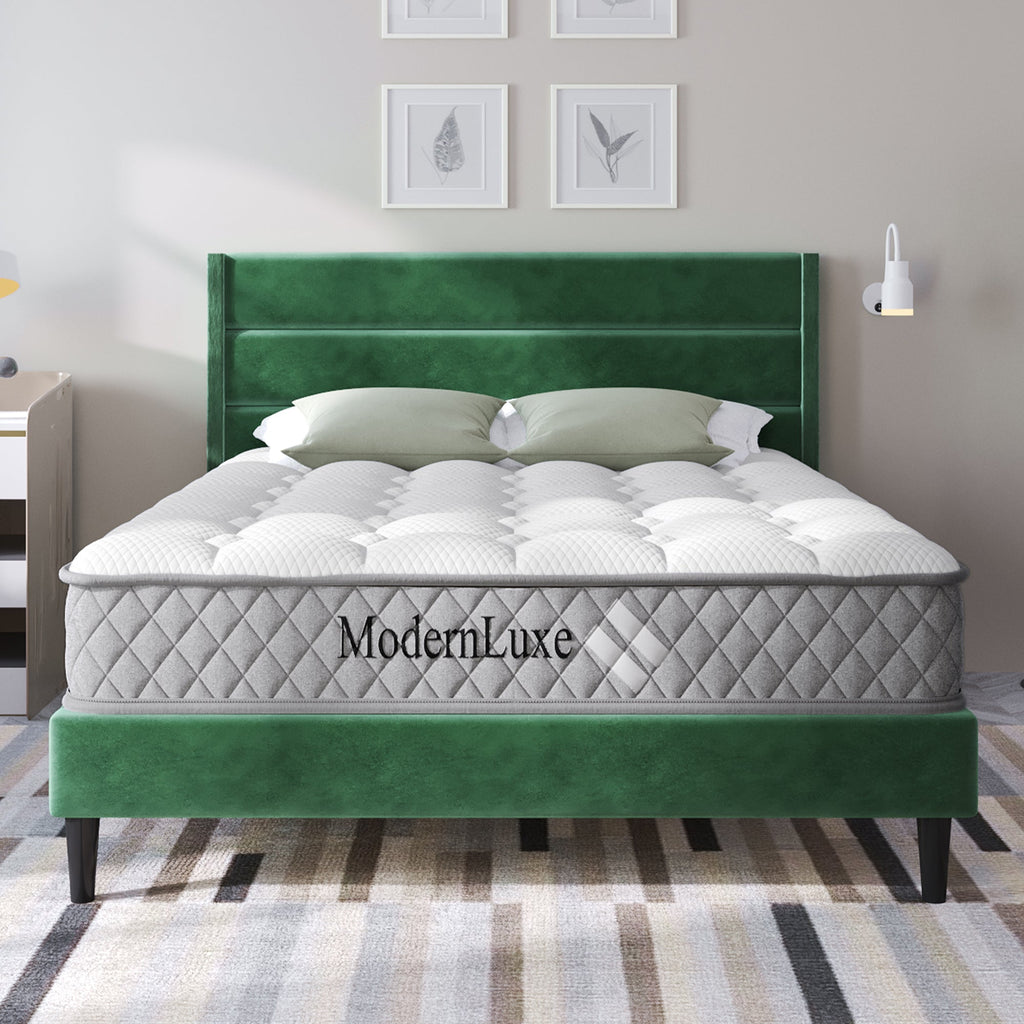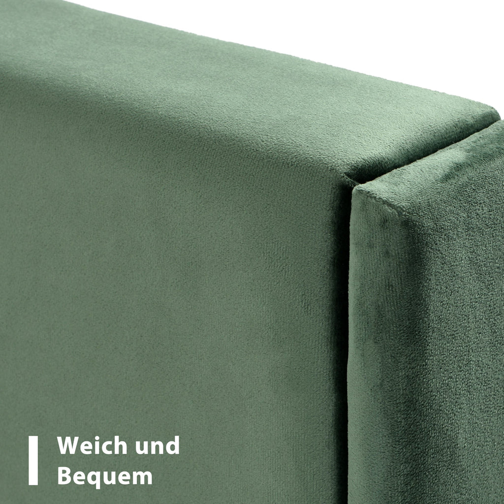 Upholstered Bed 140x200cm with Headboard, Dark Green Velvet