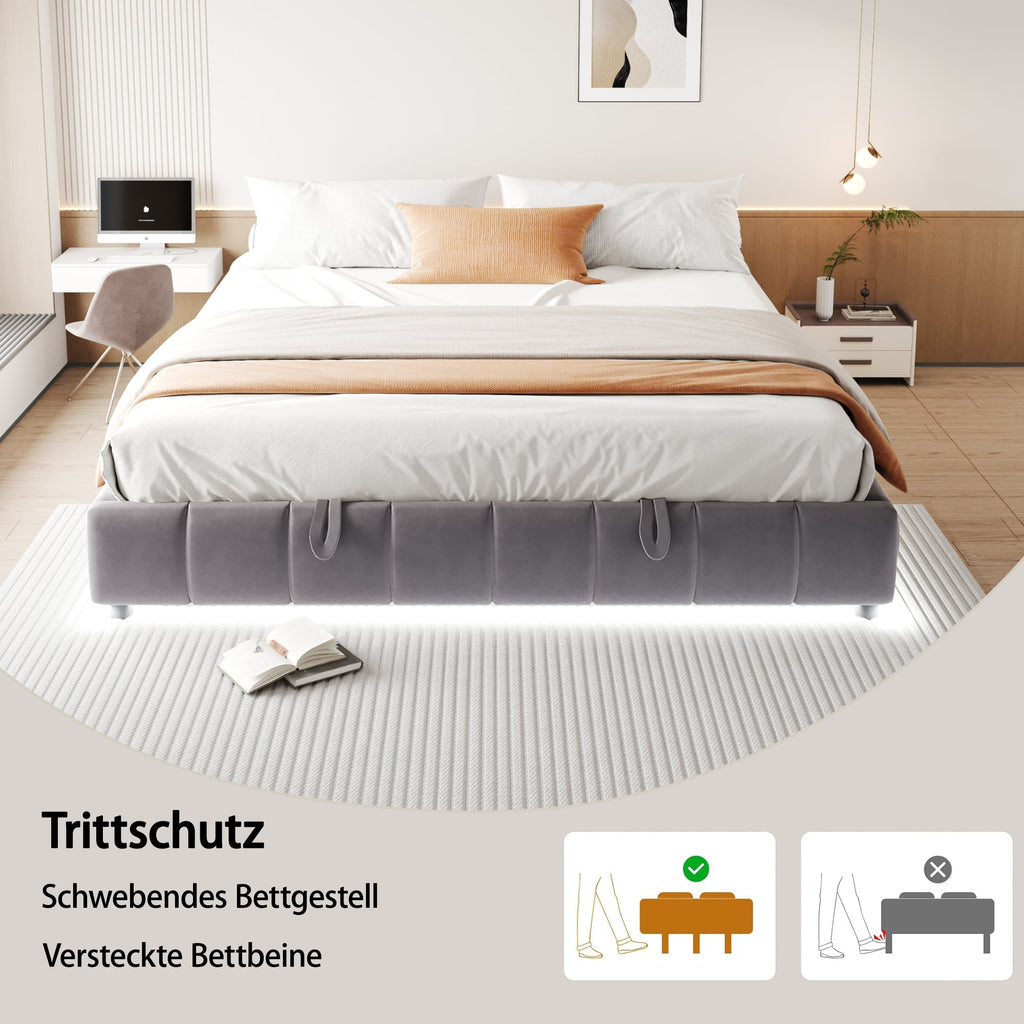 Upholstered Bed 180 x 200 cm, LED Light Strip, Storage, Grey