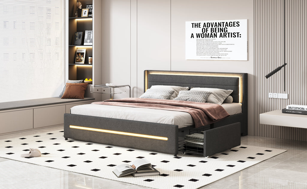The bed features a practical design with four spacious drawers for easy organization. From extra bedding to seasonal clothes, you can keep all your essentials within easy reach while maintaining a clutter-free environment.