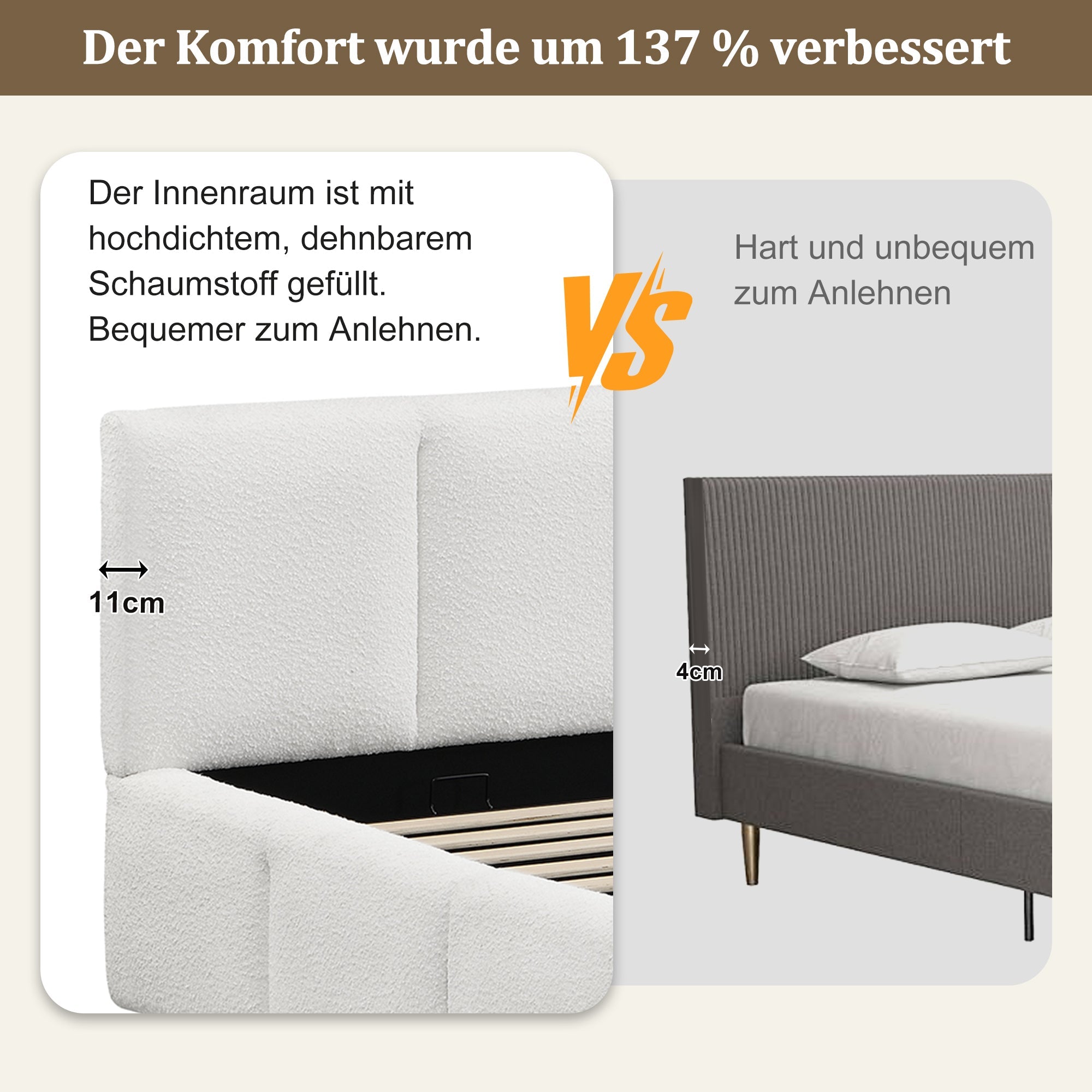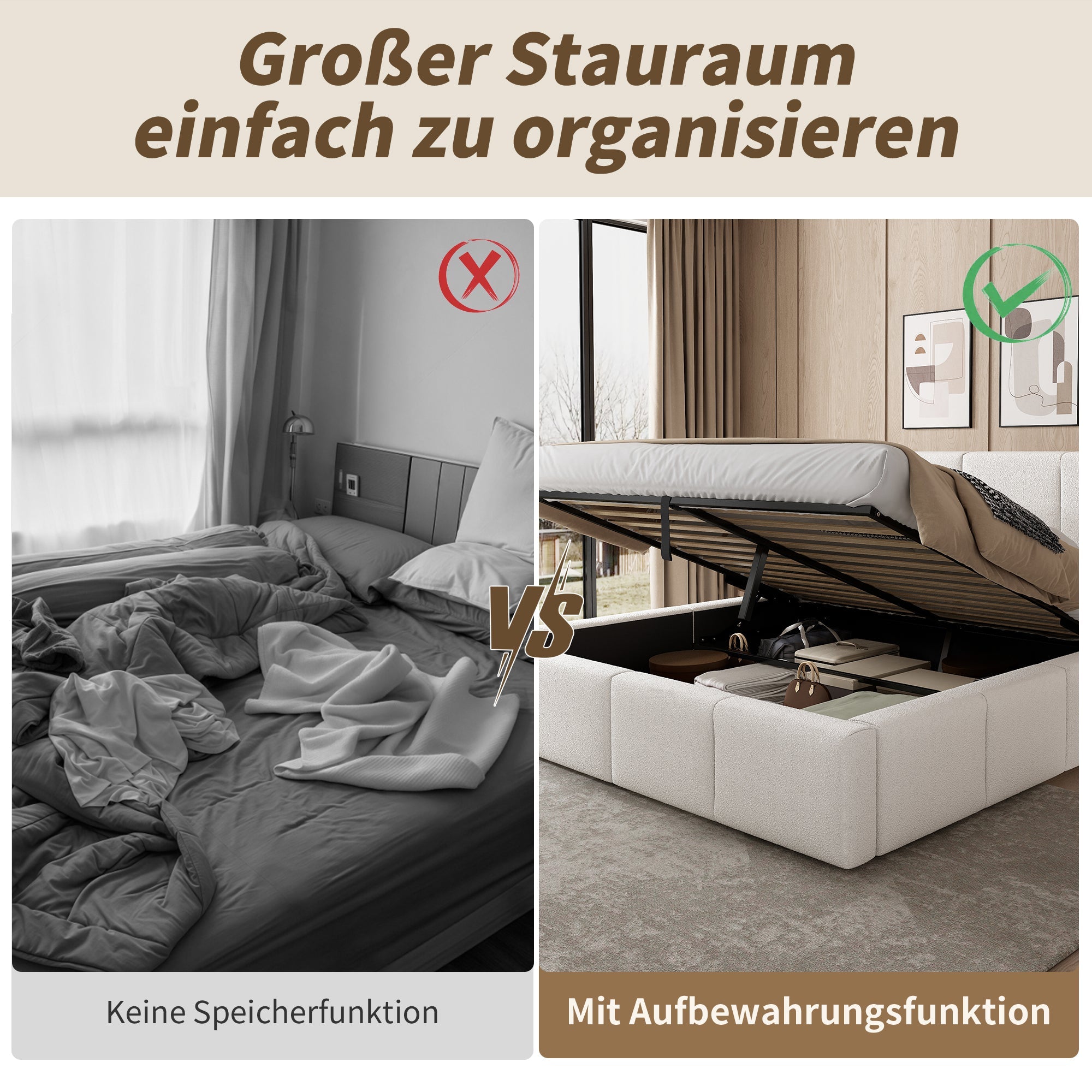 Upholstered Bed 180x200cm Hydraulic Storage Slatted Frame Beige Bouclé