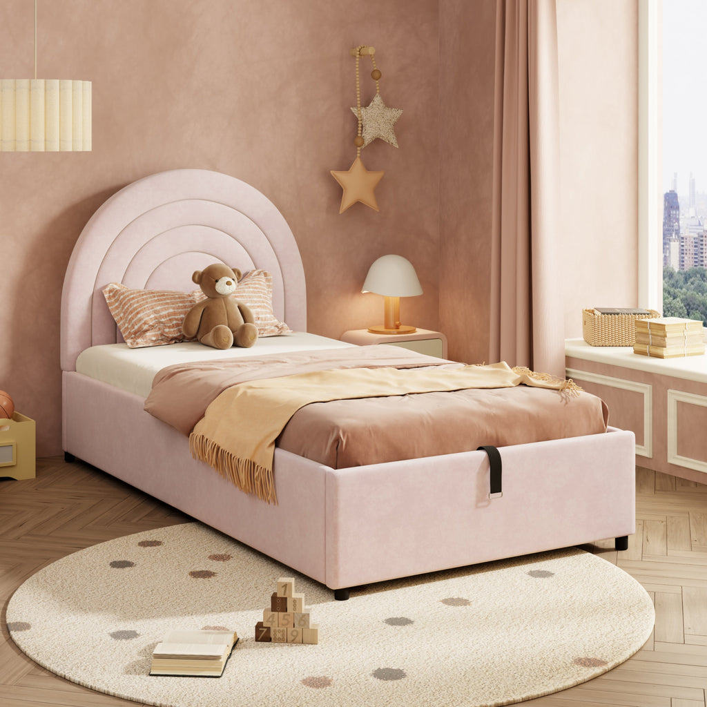 Upholstered Bed 3ft 90*190 Single Bed with Slatted Frame and Headboard, Velvet Pink