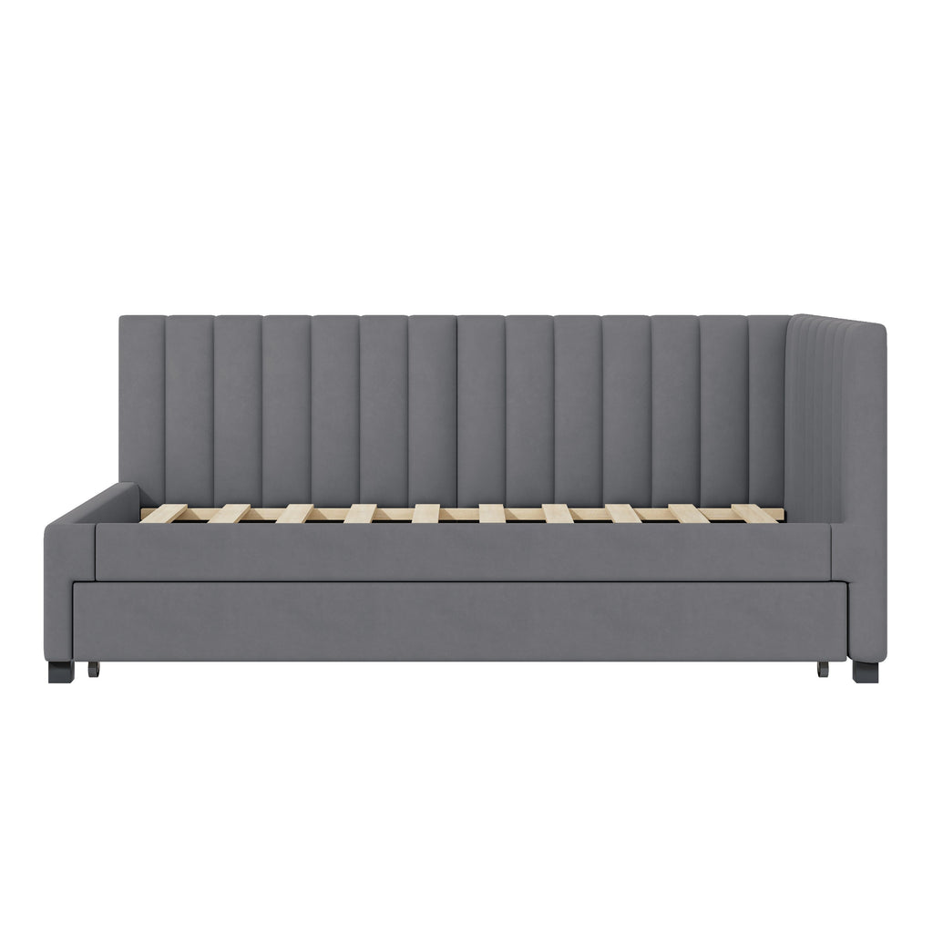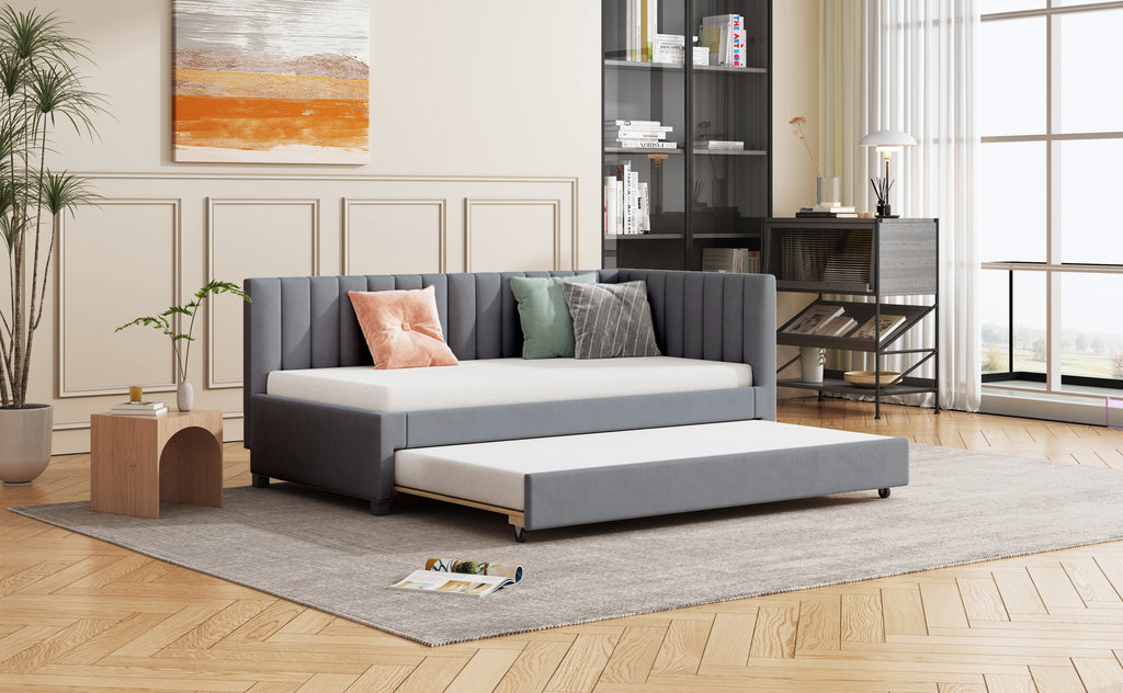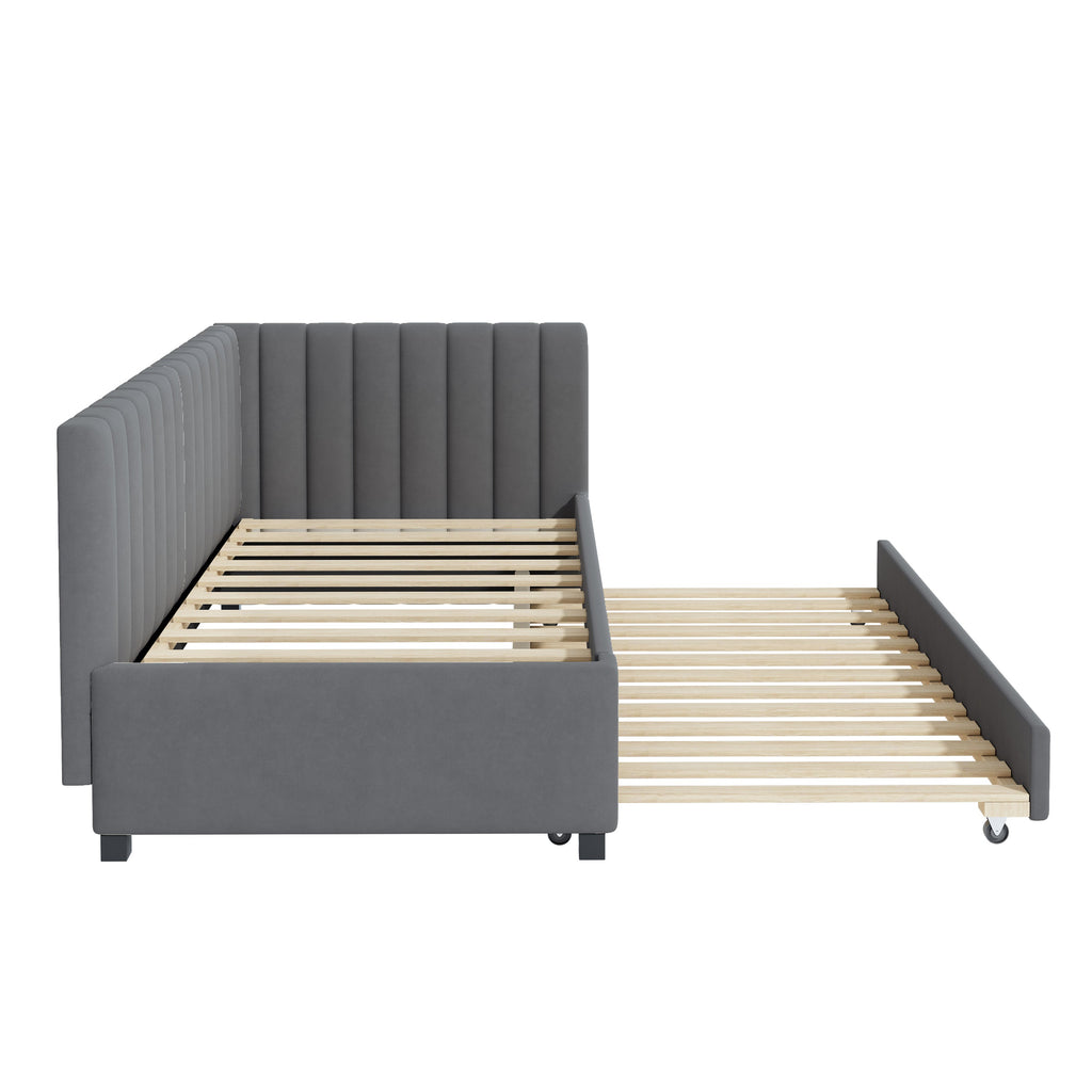 Upholstered Bed 90x200, Pull-Out Multifunctional Sofa Bed with Slatted Frame, Velvet Fabric Gray