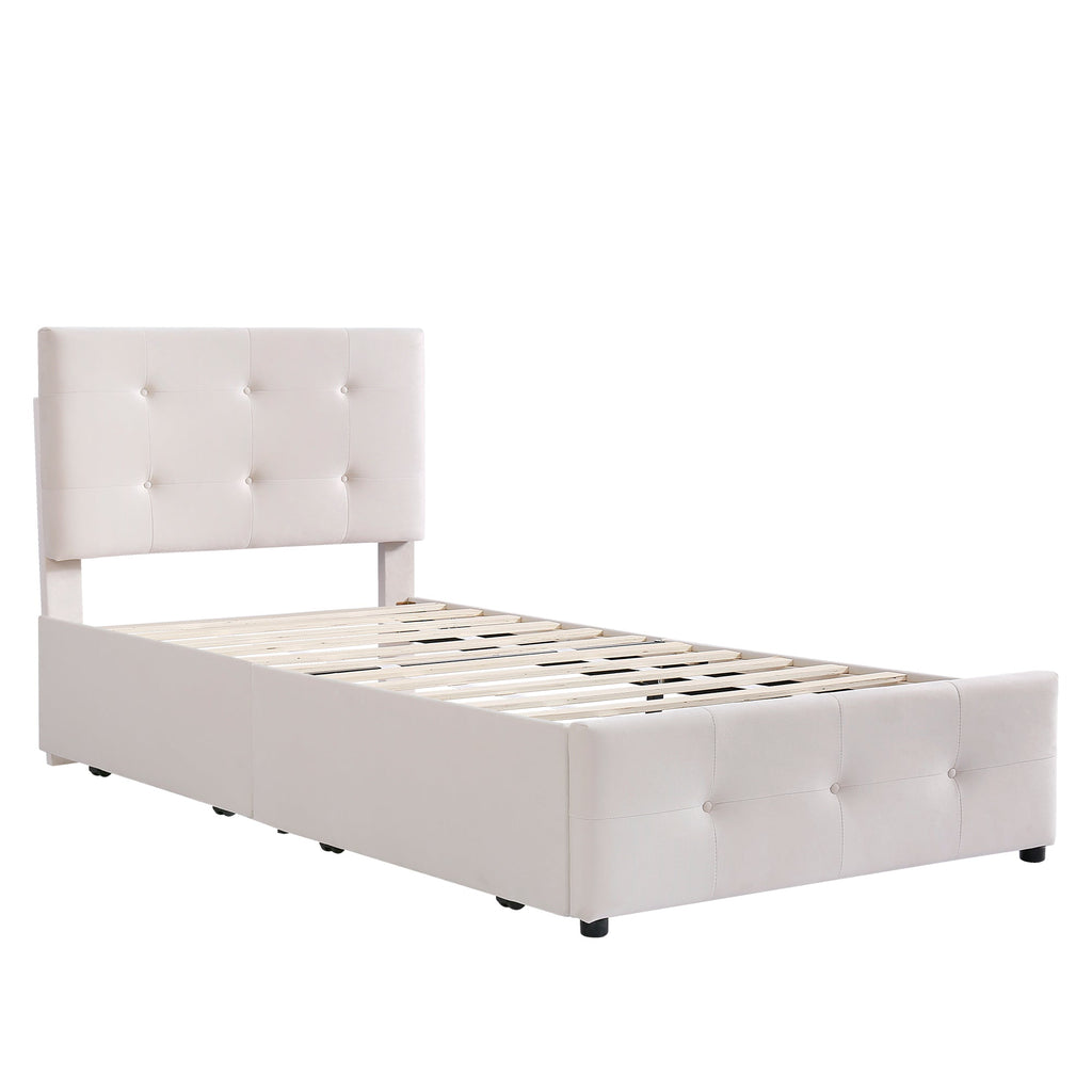 Upholstered Bed, 90x200cm with Slatted Frame & 2 Drawers, Beige Velvet
