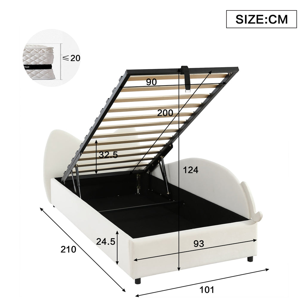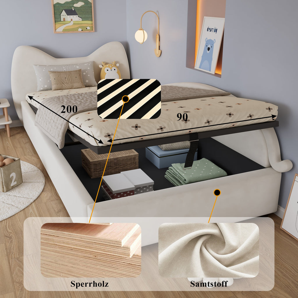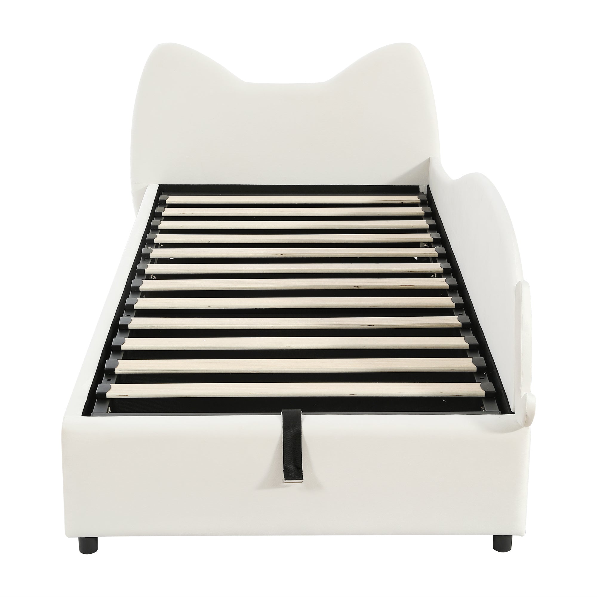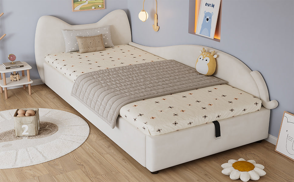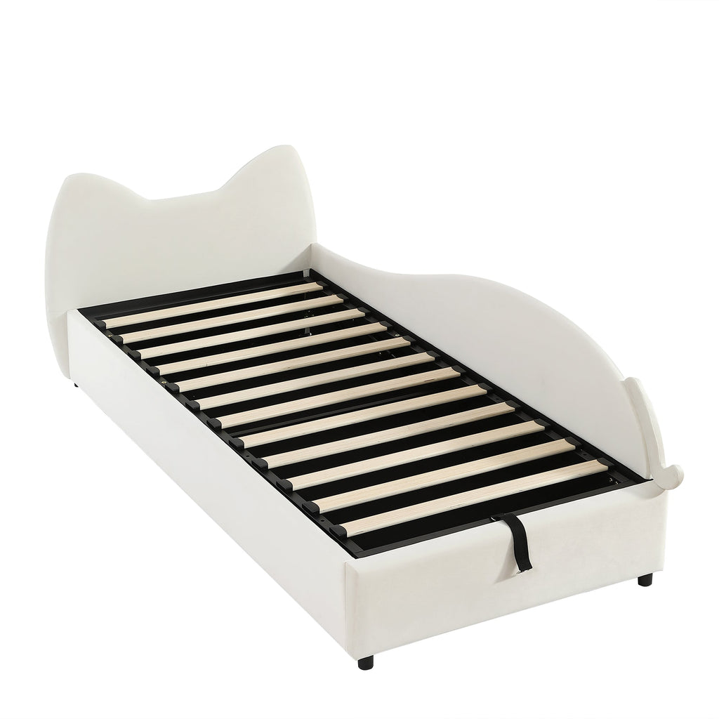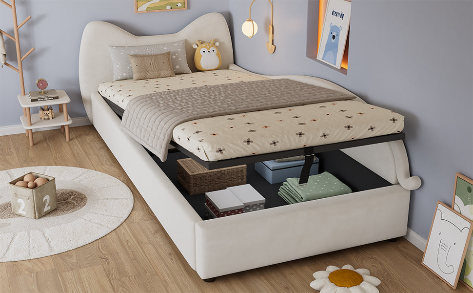 Upholstered Bed, Cat Design Hydraulic with Storage, Velvet Beige