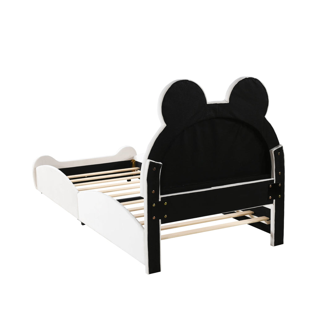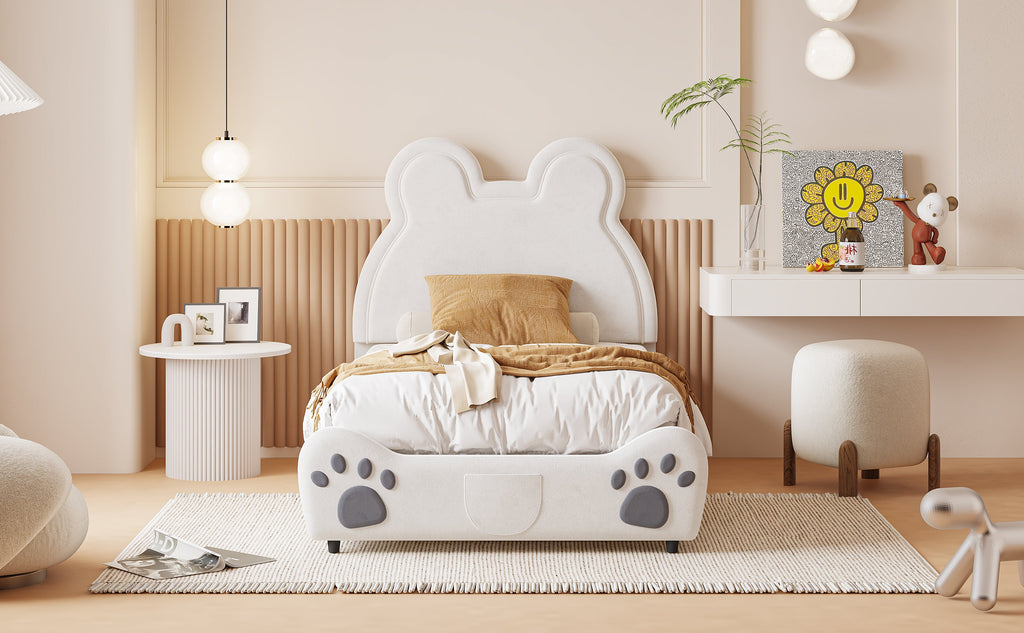 Upholstered Bed, Children's 90x200cm Bear-Shaped, White Velour