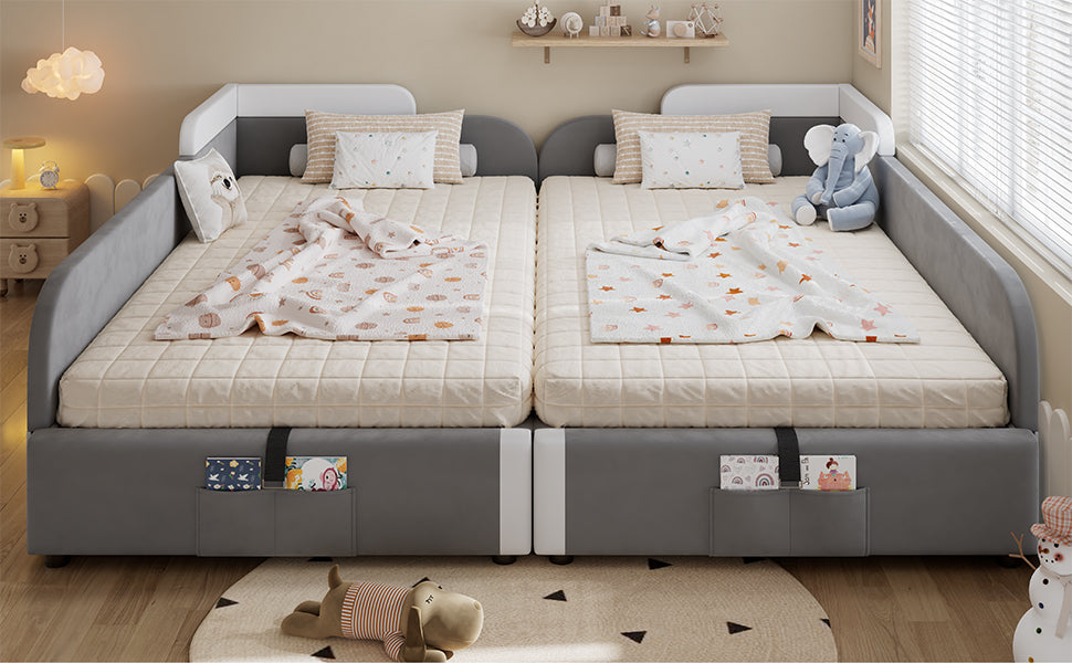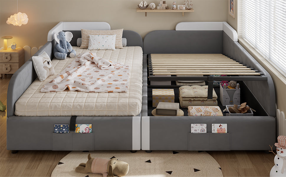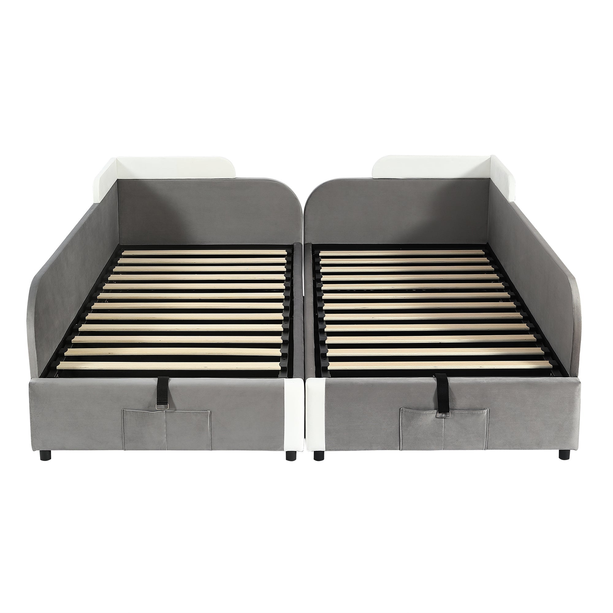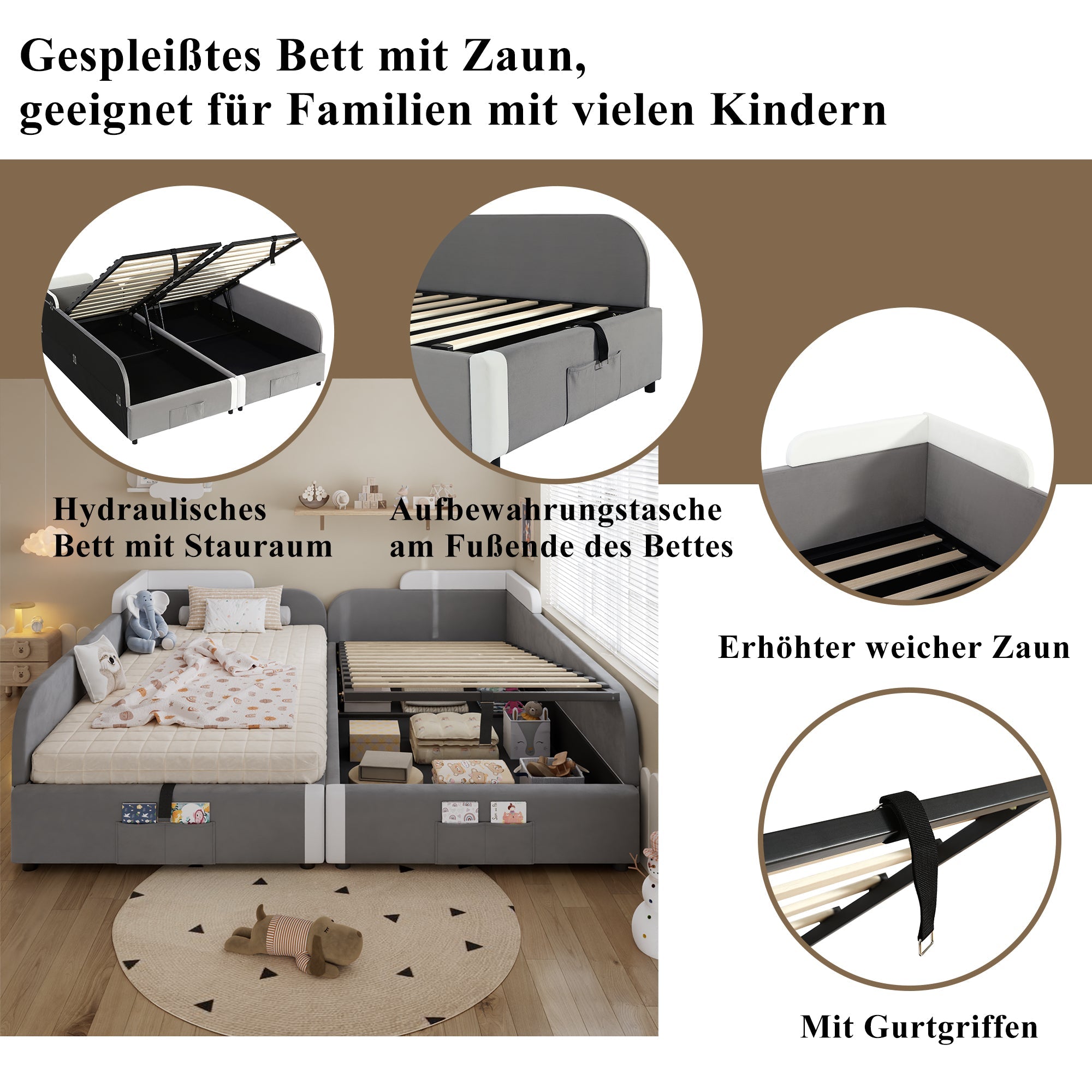Upholstered Bed, Combined Children's Bed, Hydraulic Bed with Storage, Raised Soft Fence, Gray