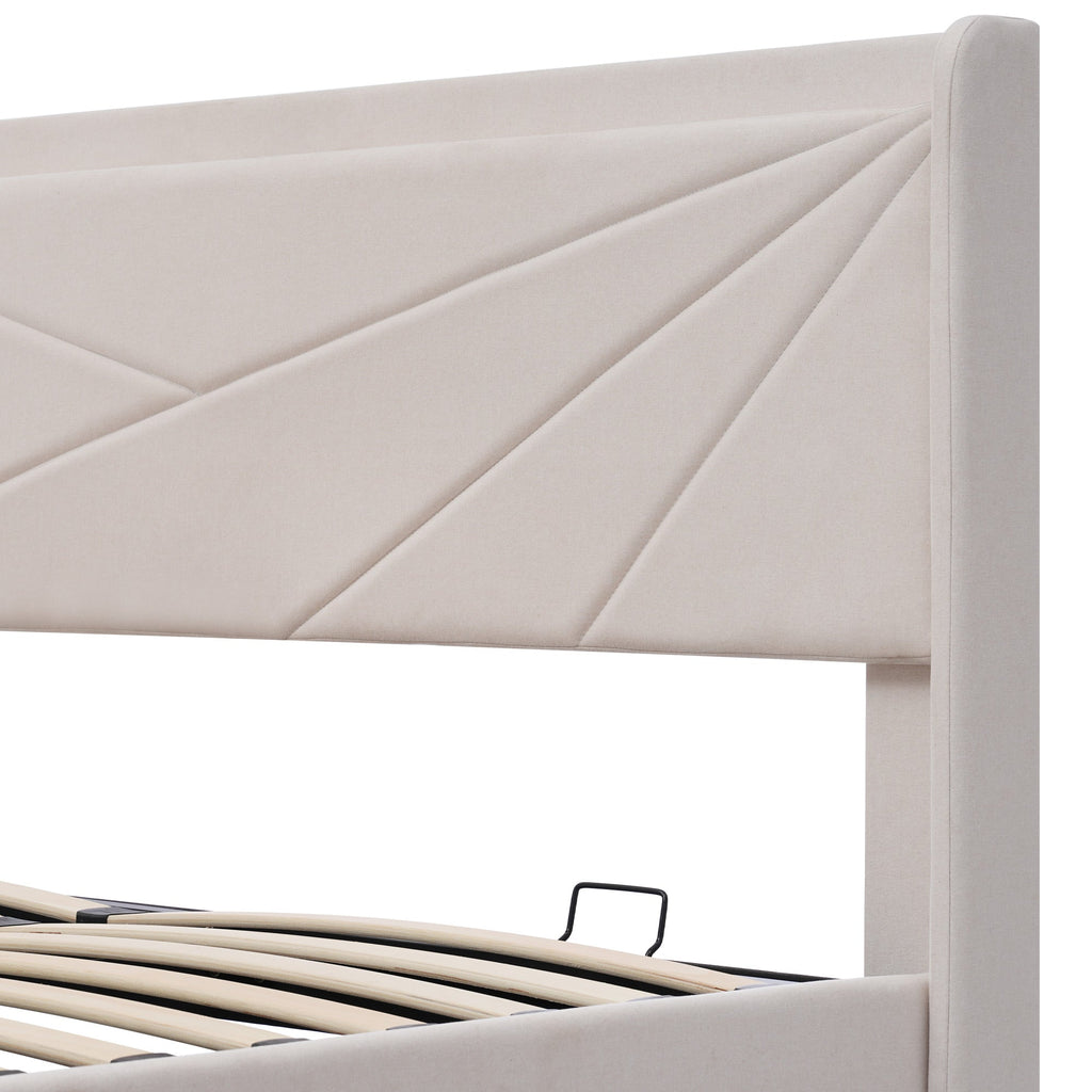 Upholstered Bed, Double with USB C Headboard, Storage, Linen