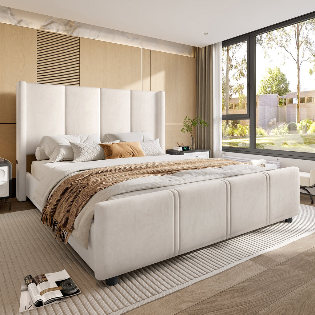 High-quality short suede material ensures the ultimate skin-friendly experience. The choice of high-quality short suede material is the ongoing pursuit of quality and comfort for this bed frame. When you lightly touch the surface, you'll feel the delicate and soft touch of short velvet, like a gentle breeze or a warm blanket. When you lie down or lean against the bed, this soft, cloud-like experience is infinitely enhanced, providing complete relaxation and comfort.