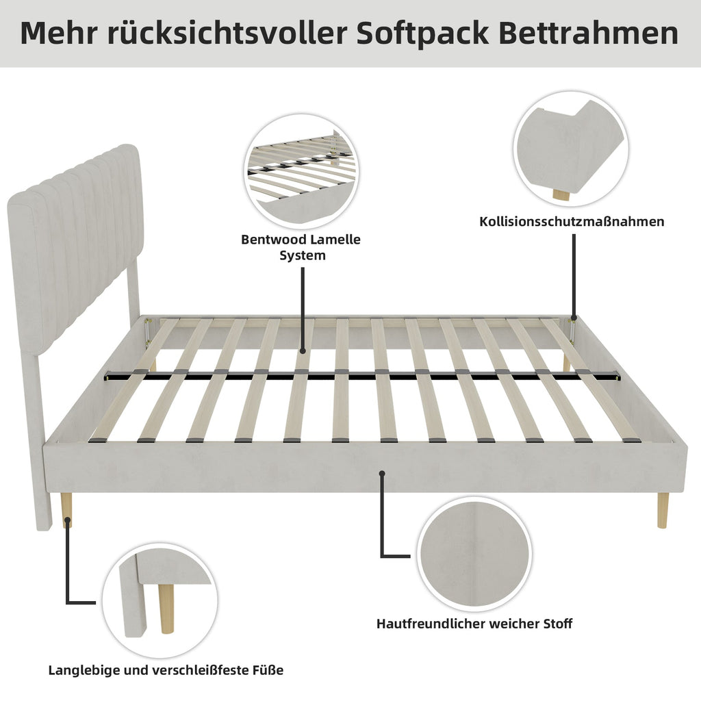 Upholstered Bed, Minimalist Plush Headboard 140x200cm, Beige