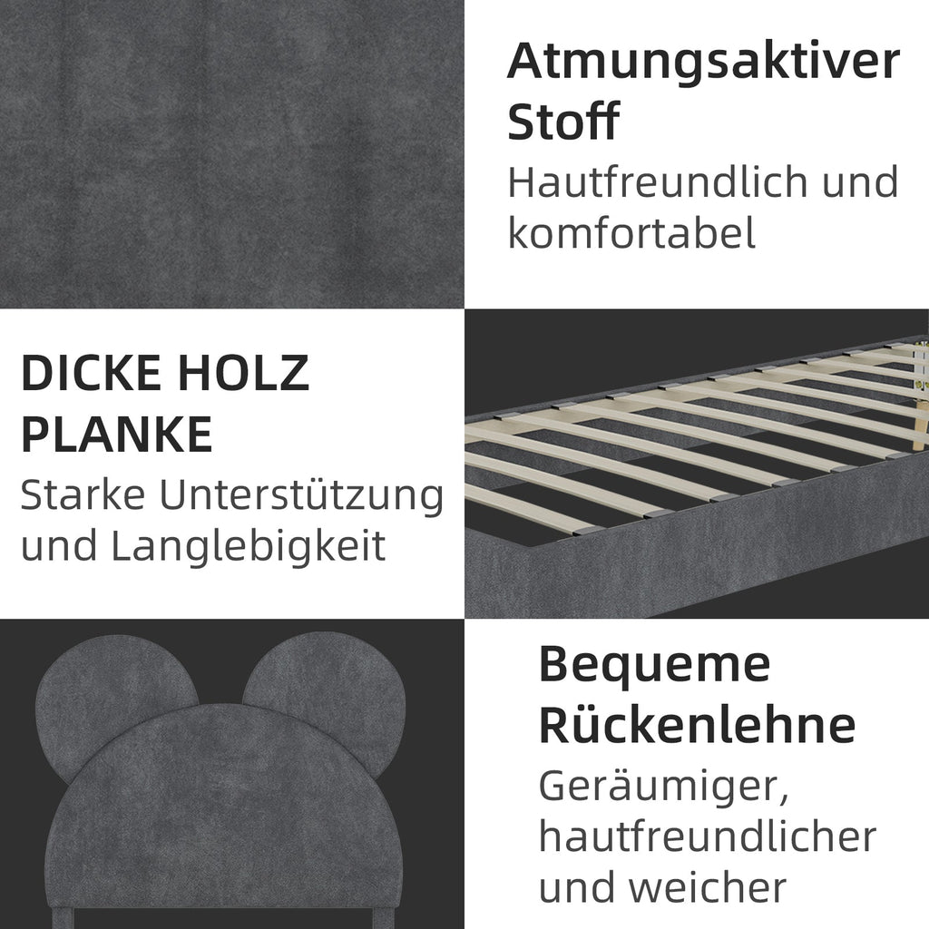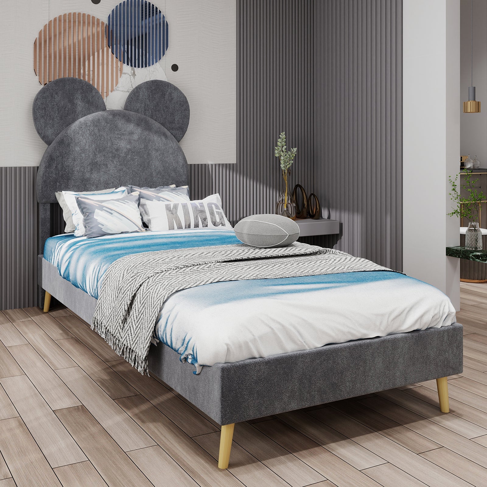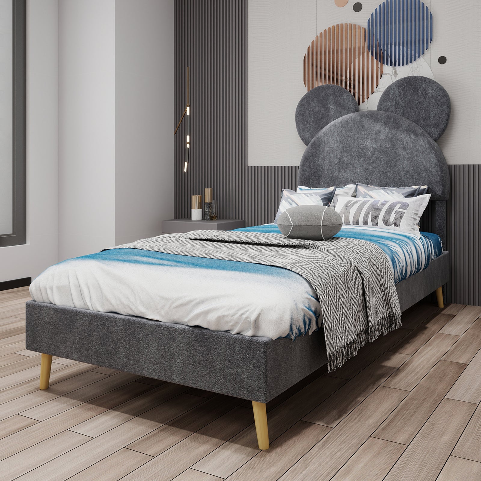 Out-of-the-box design: The upholstered headboard features a fun, cartoon-shaped headboard that adds a playful and innocent touch to any bedroom, providing a unique experience for both sleeping and playing.