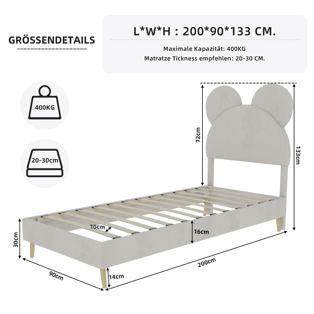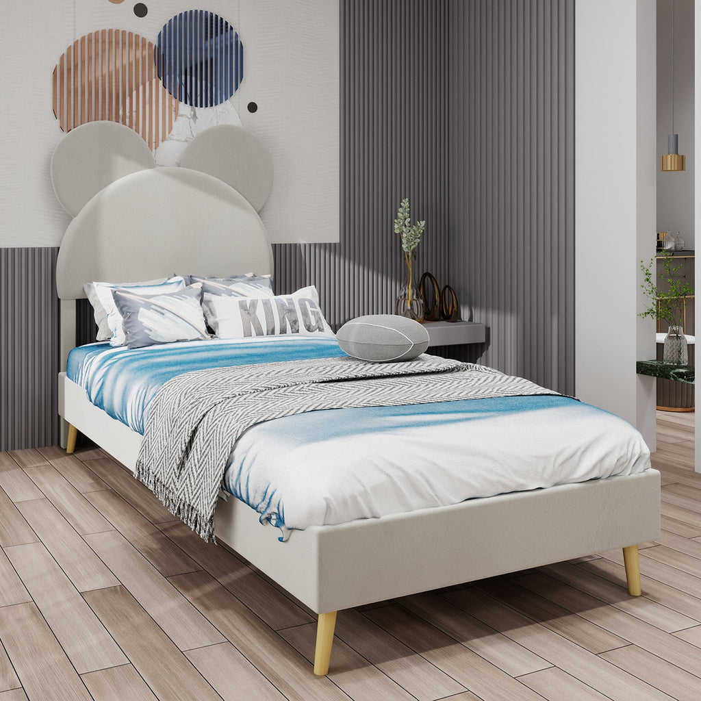 Upholstered Bed, Modern Minimalist Cartoon-Themed Headboard, 90x200 cm, Beige