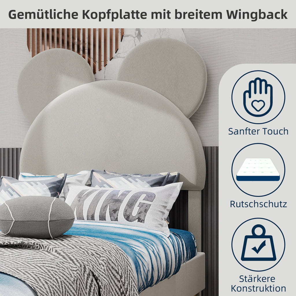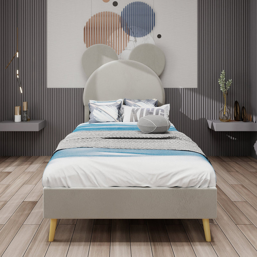 Out-of-the-box design: The upholstered headboard features a fun, cartoon-shaped headboard that adds a fun and innocent touch to any bedroom and provides a unique experience for sleeping and playing.