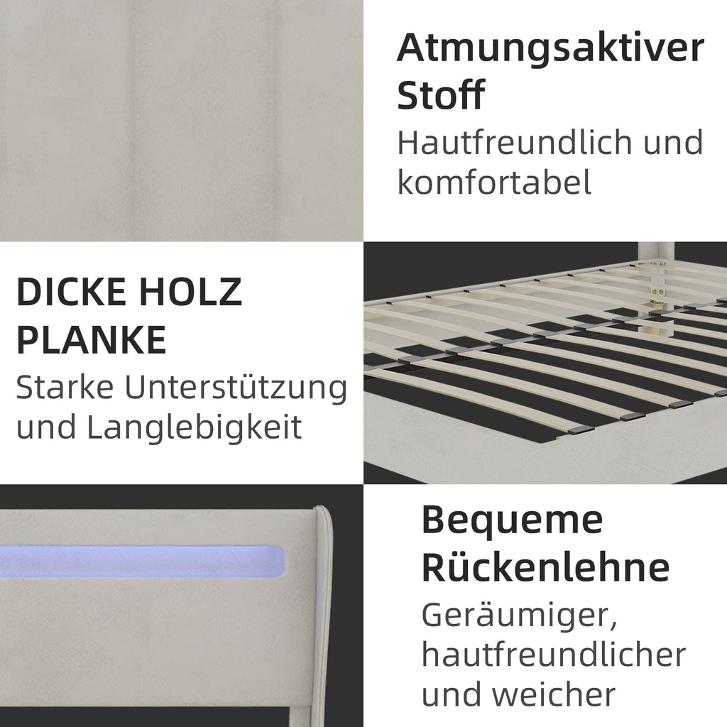 Upholstered Bed, Modern Minimalist LED-backlit Headboard, 160x200 cm, Beige