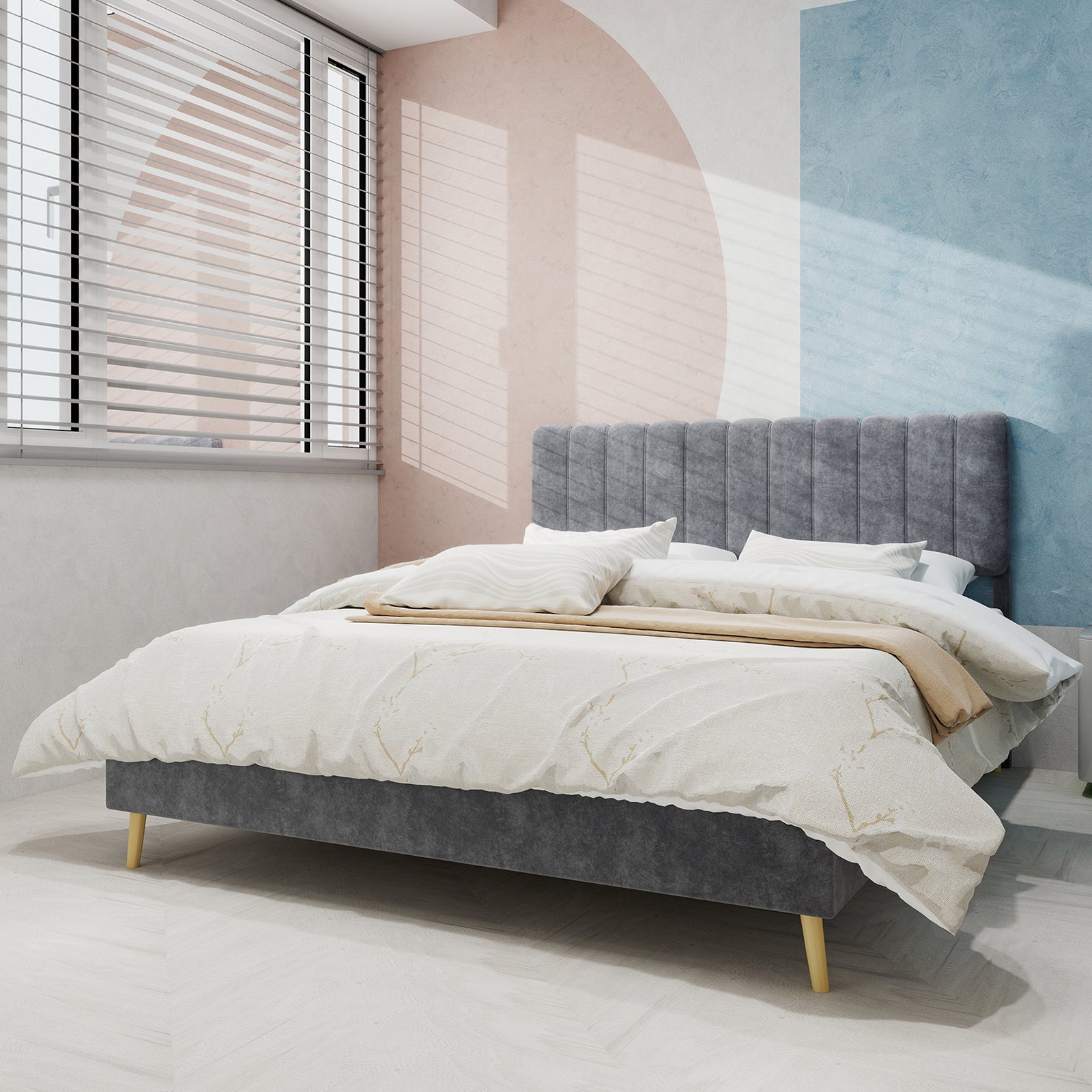 Comfortable Design: Crafted from a cozy Dutch velvet fabric, this bed frame showcases a modern, sophisticated style that complements a variety of interior themes.