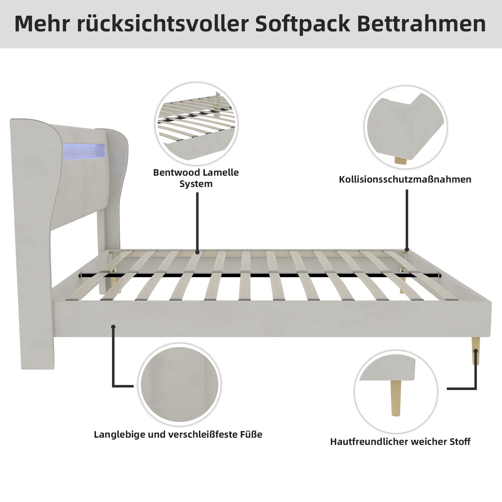Immersive Ambient Lighting: Our flatbed is equipped with adjustable, color-changing LED lighting, allowing you to choose the right color for your desired ambiance. Thanks to the multiple adjustment options, it won't be too wobbly if you wake up in the night, and it can also illuminate your surroundings.