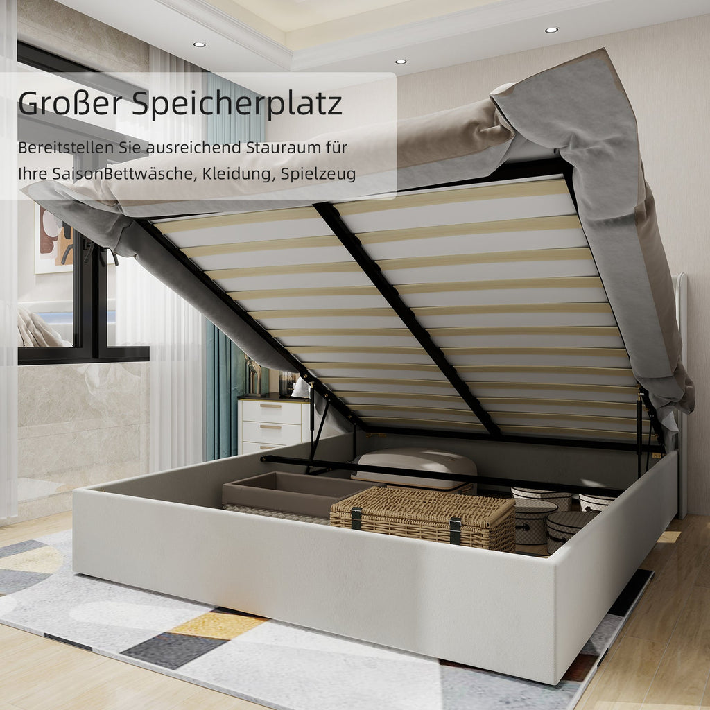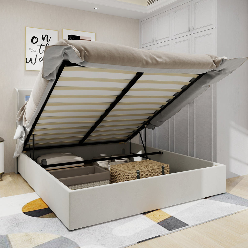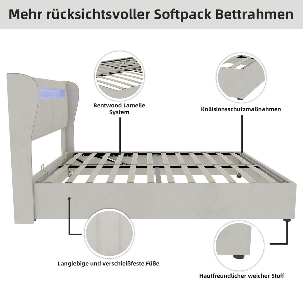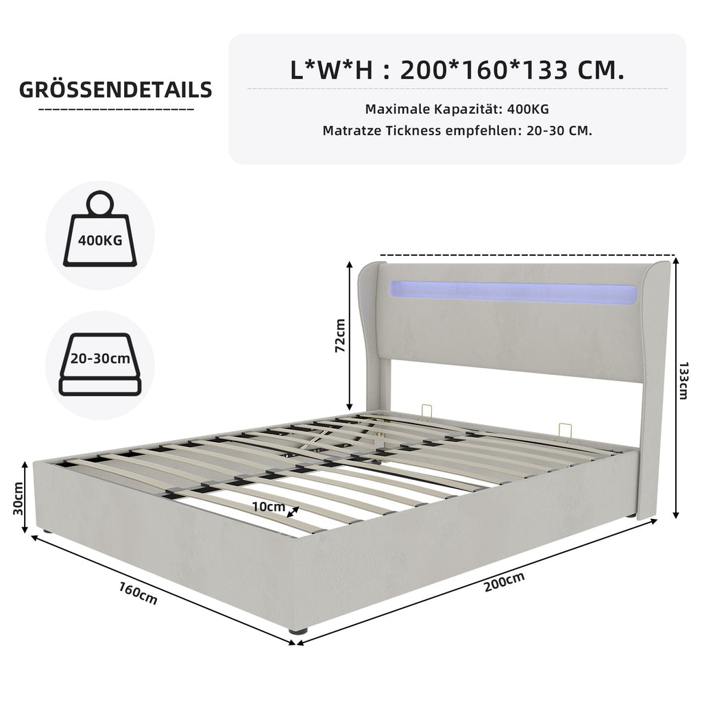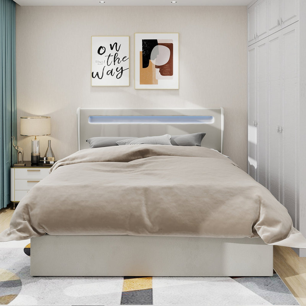 Upholstered Bed, Modern Minimalist with LED Headboard, 160x200cm, Beige