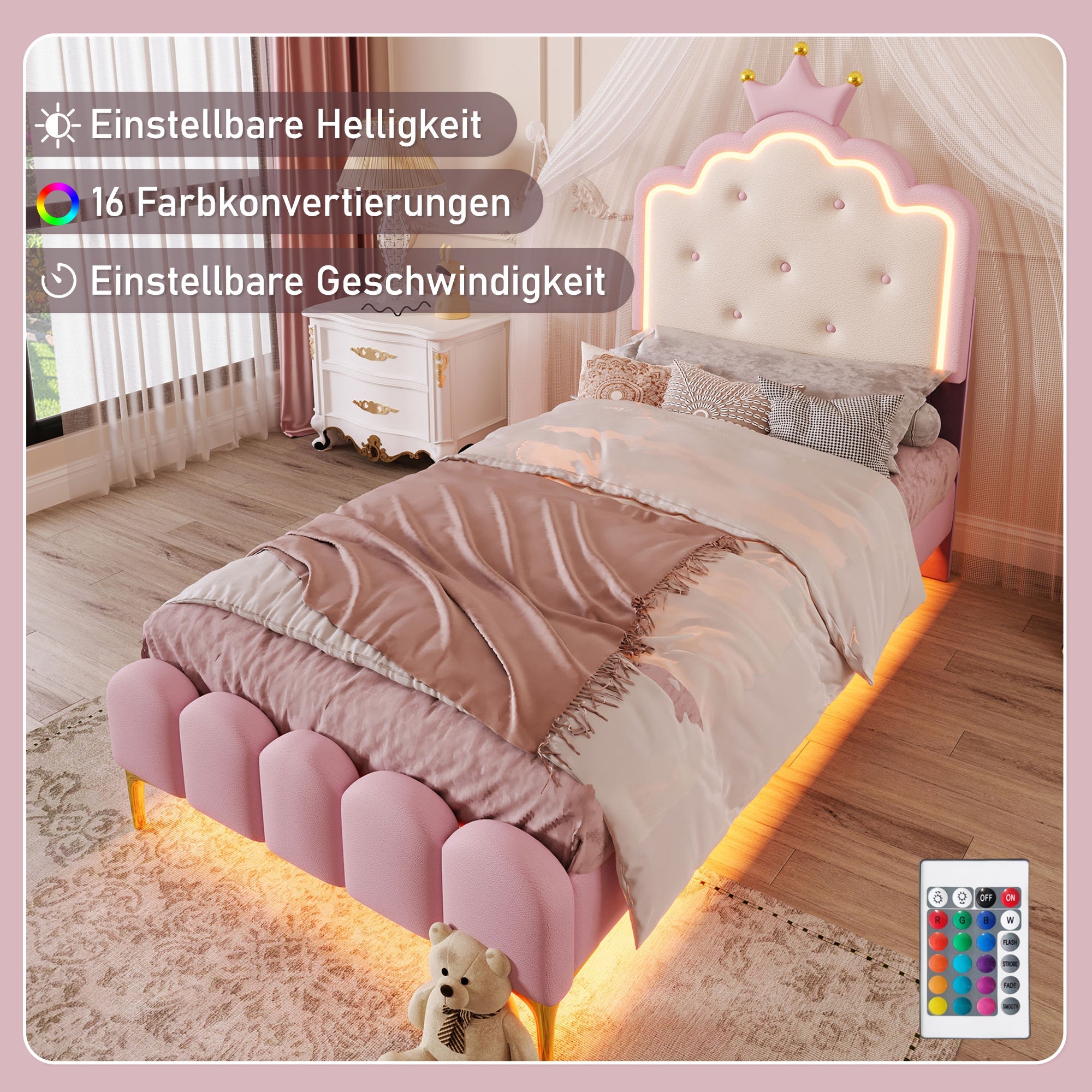 Upholstered Bed Princess Shape 90x200cm Ambient Light Pink PU Material