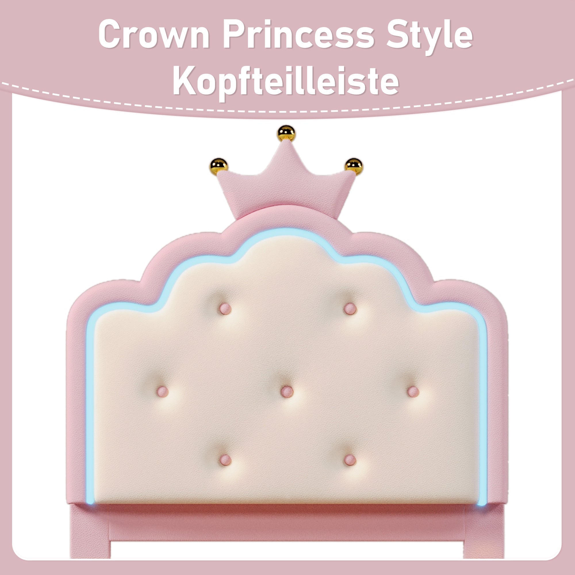This princess bed is carefully crafted from eco-friendly and safe PU material that is pleasant to the touch and easy to care for. The unique crown princess design with its fashionable pink finish instantly transforms your bedroom into a dreamy fairytale world.