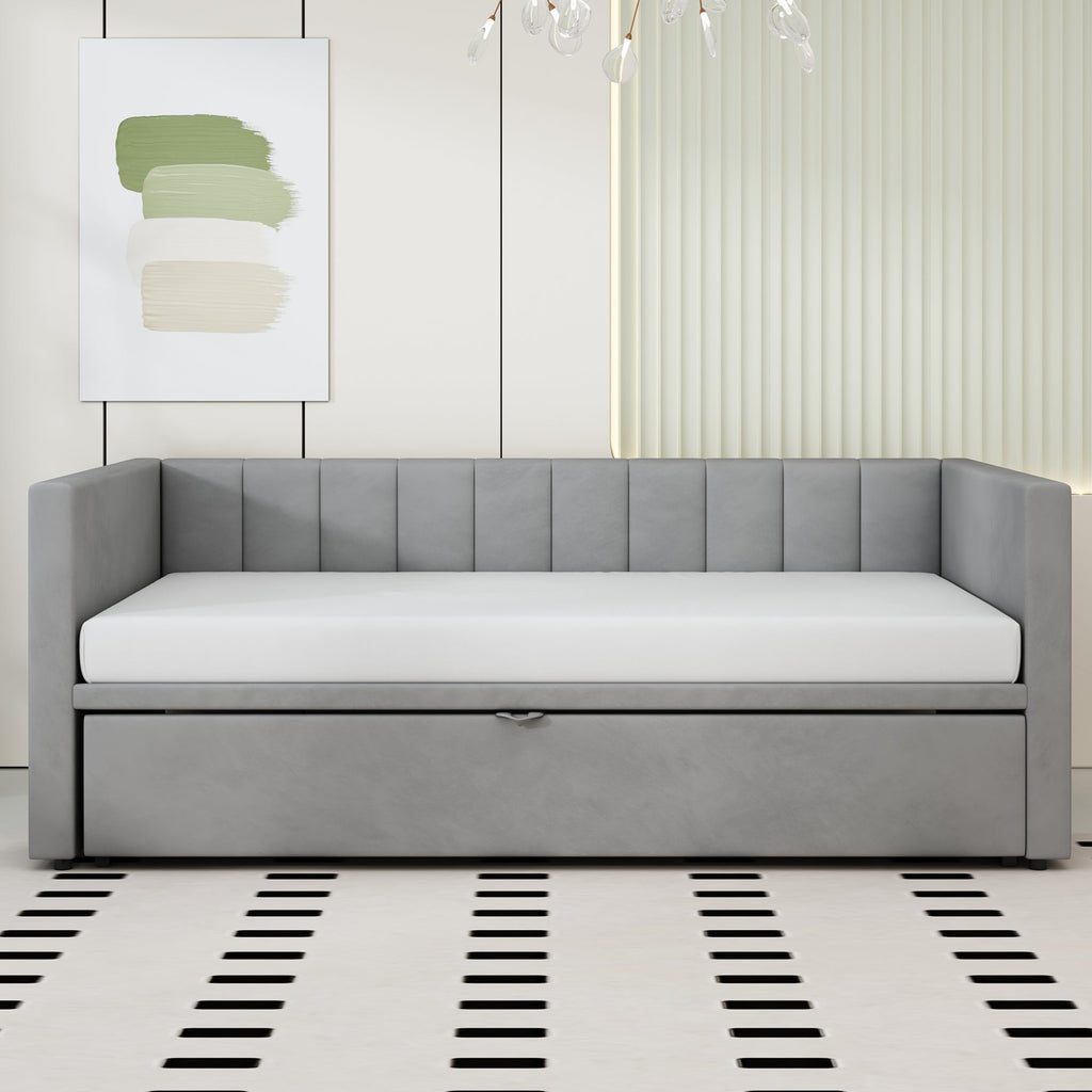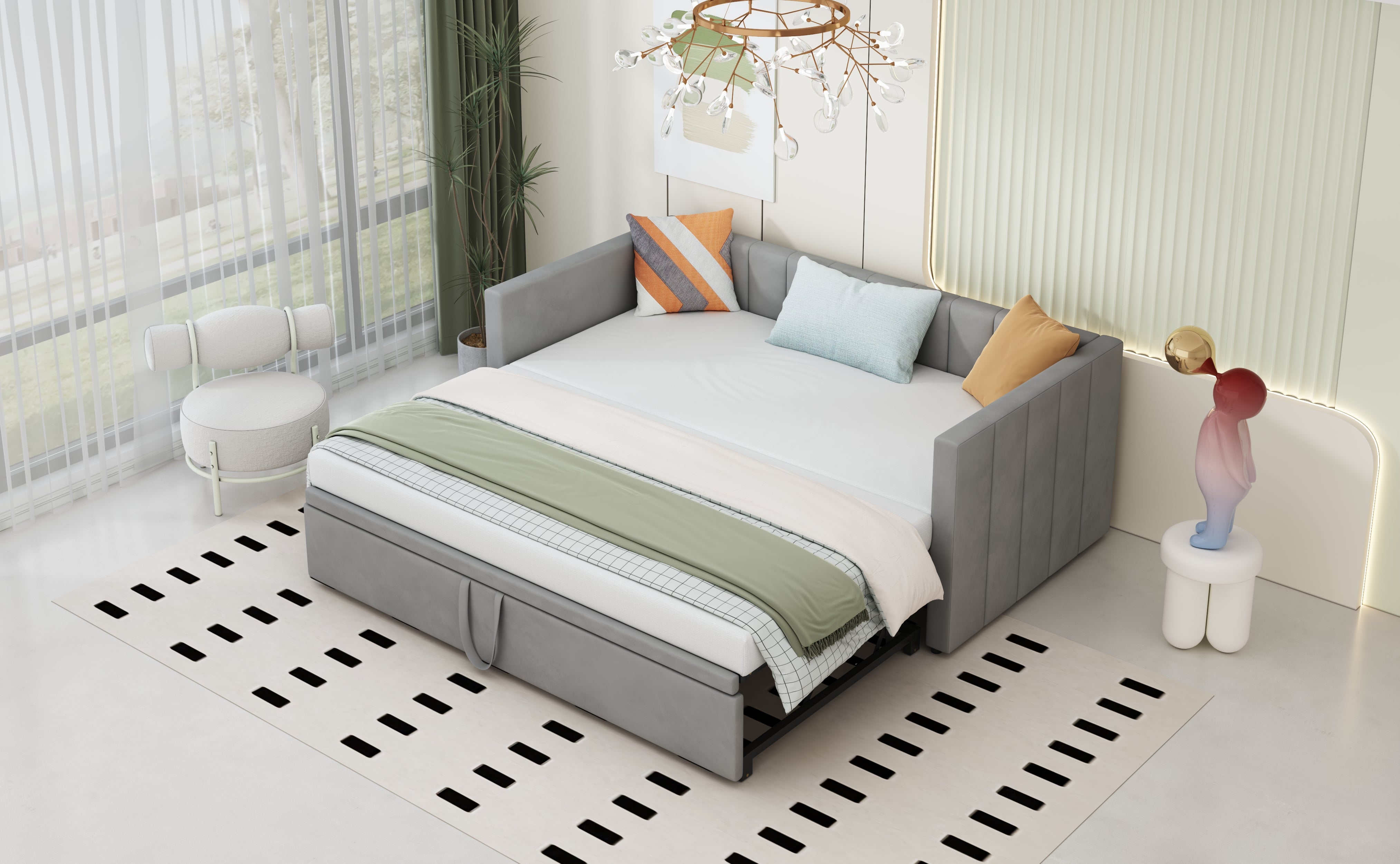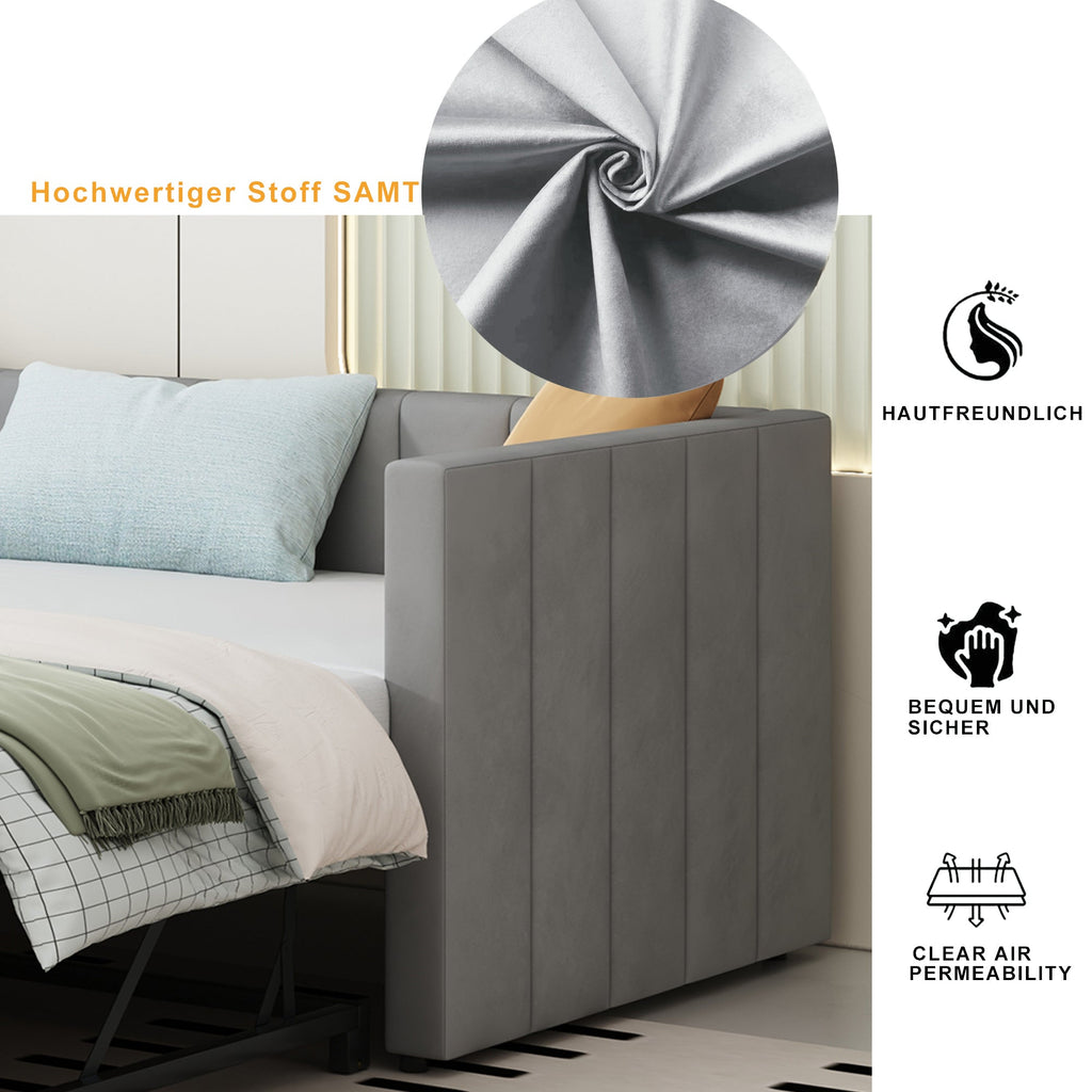 Upholstered Bed, Pull-Out Sofa Bed 90/180*200 cm with Slatted Frames, Skin-Friendly Velvet Fabric, Gray