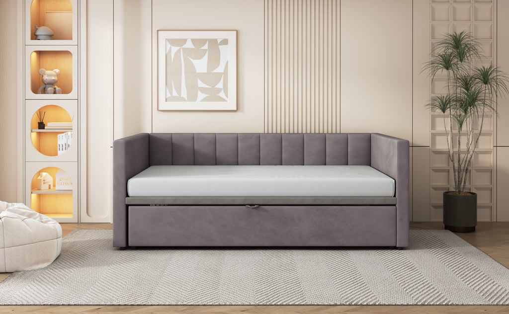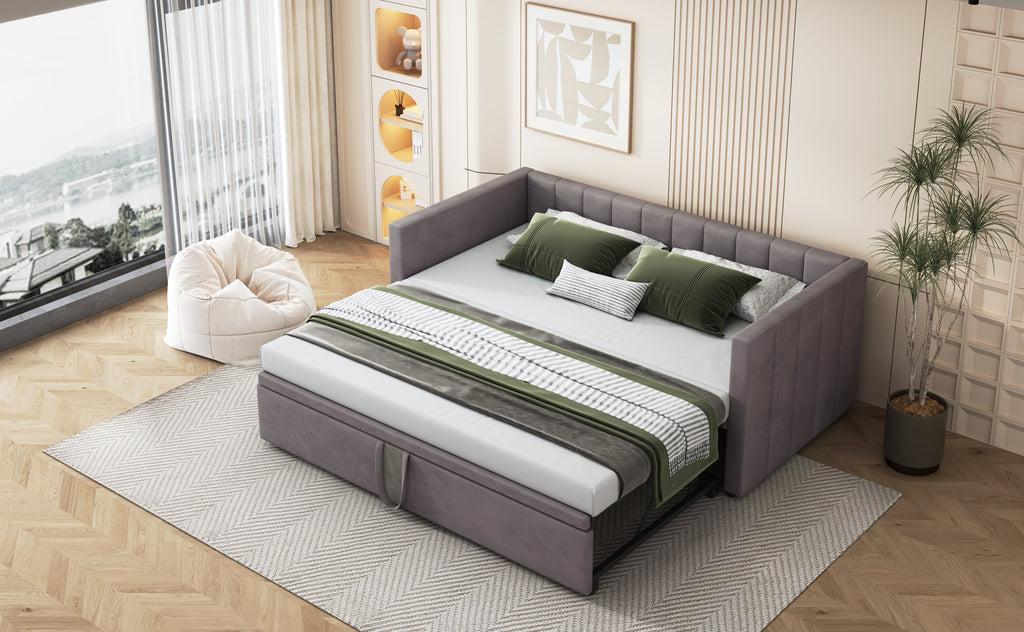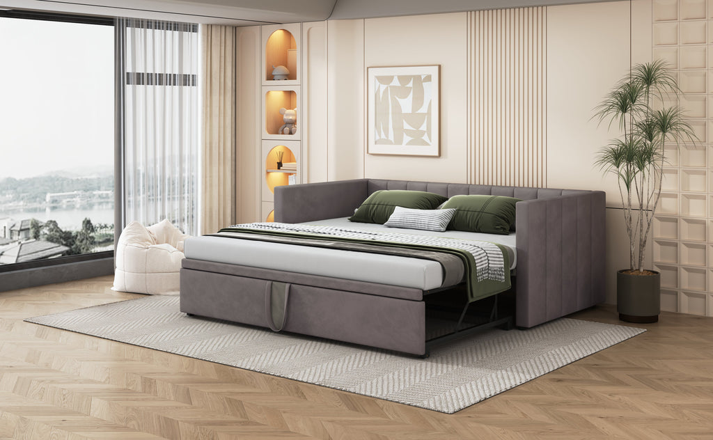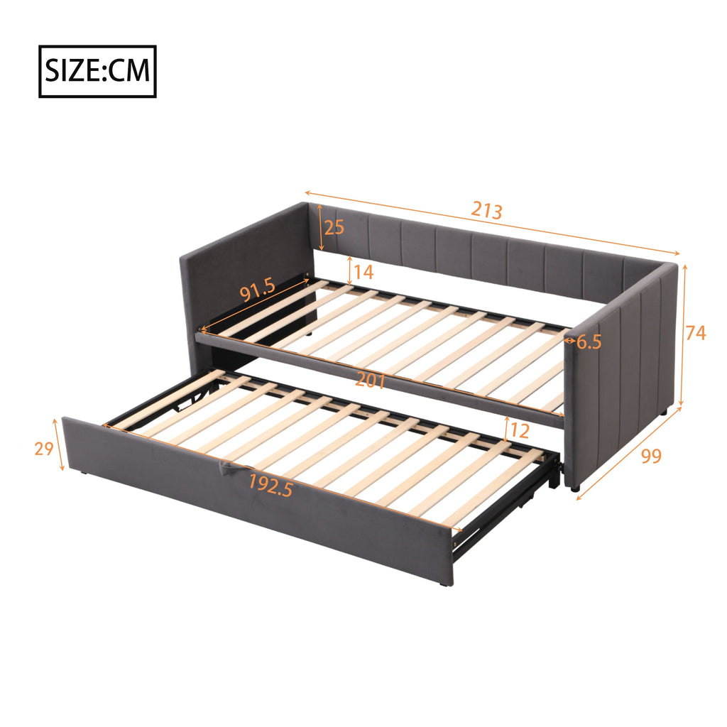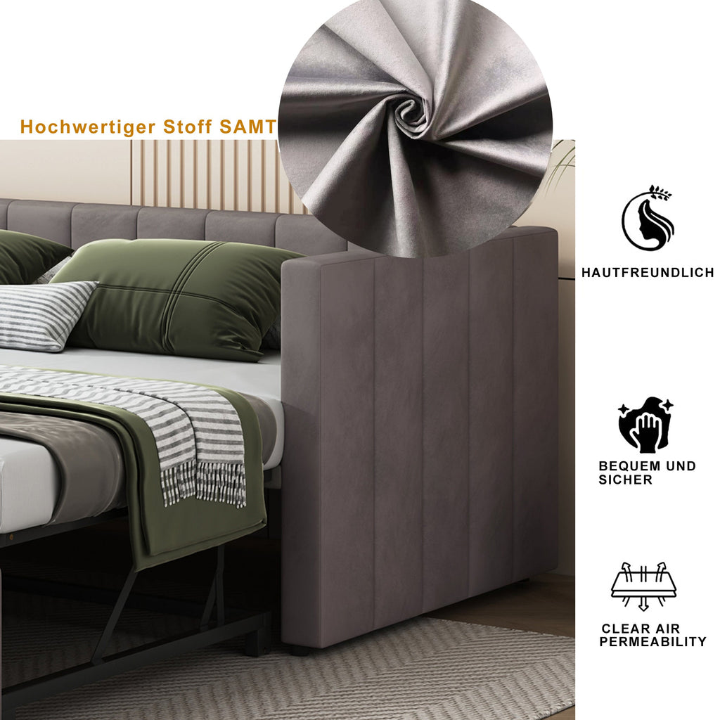 Upholstered Bed, Pull-Out Sofa Bed 90/180x200 cm with Slatted Frames, Multifunctional Velvet Fabric, Grey