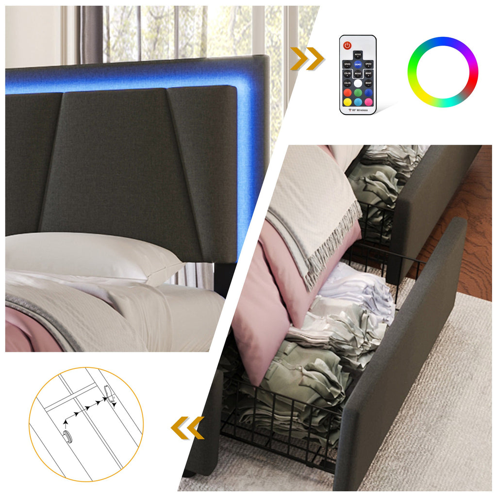 Package Contents: Bed frame, 2 drawers, and remote controls.