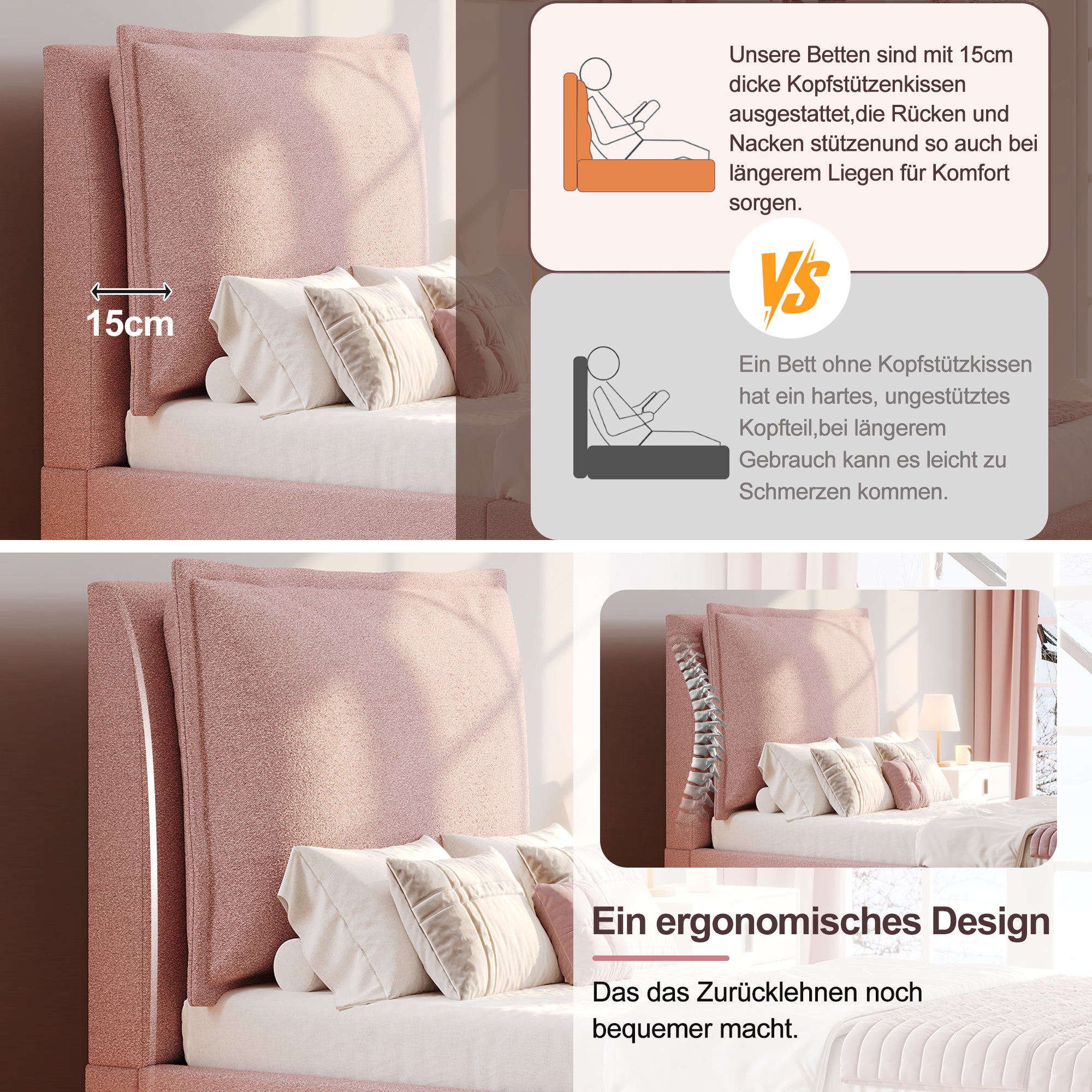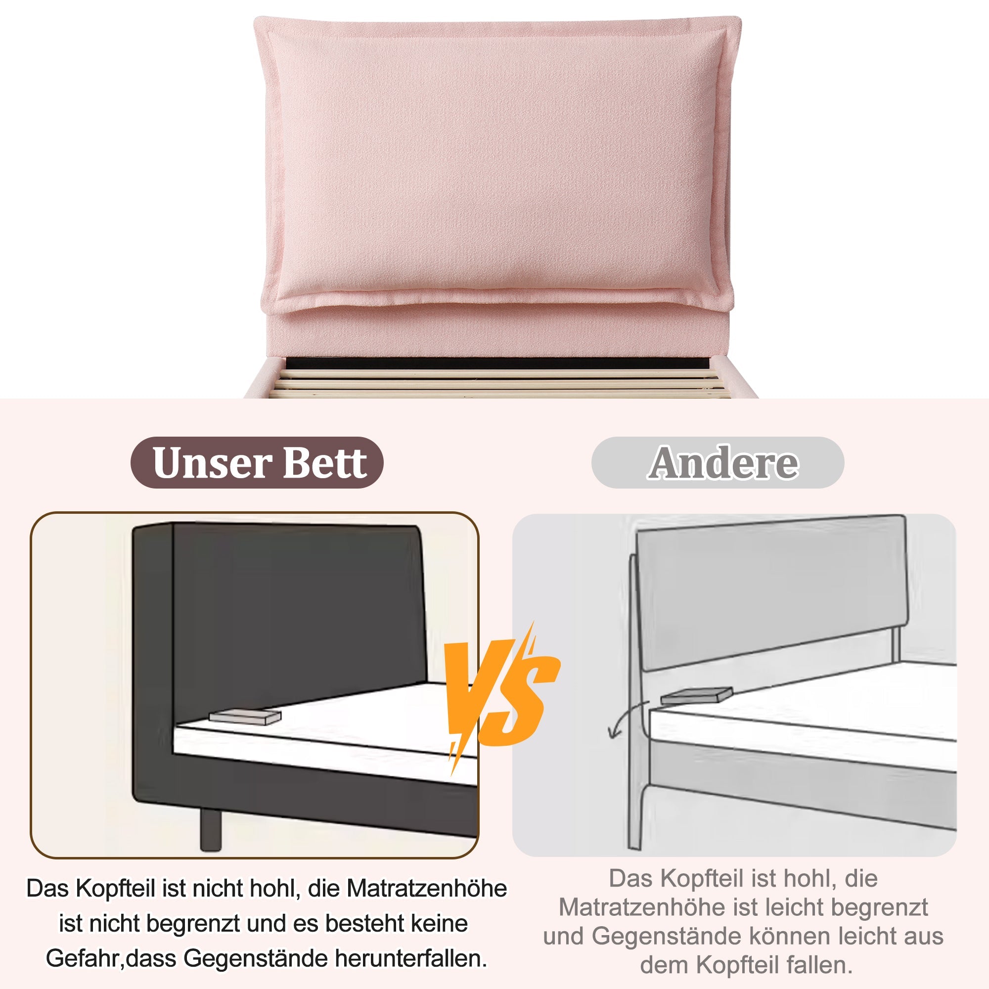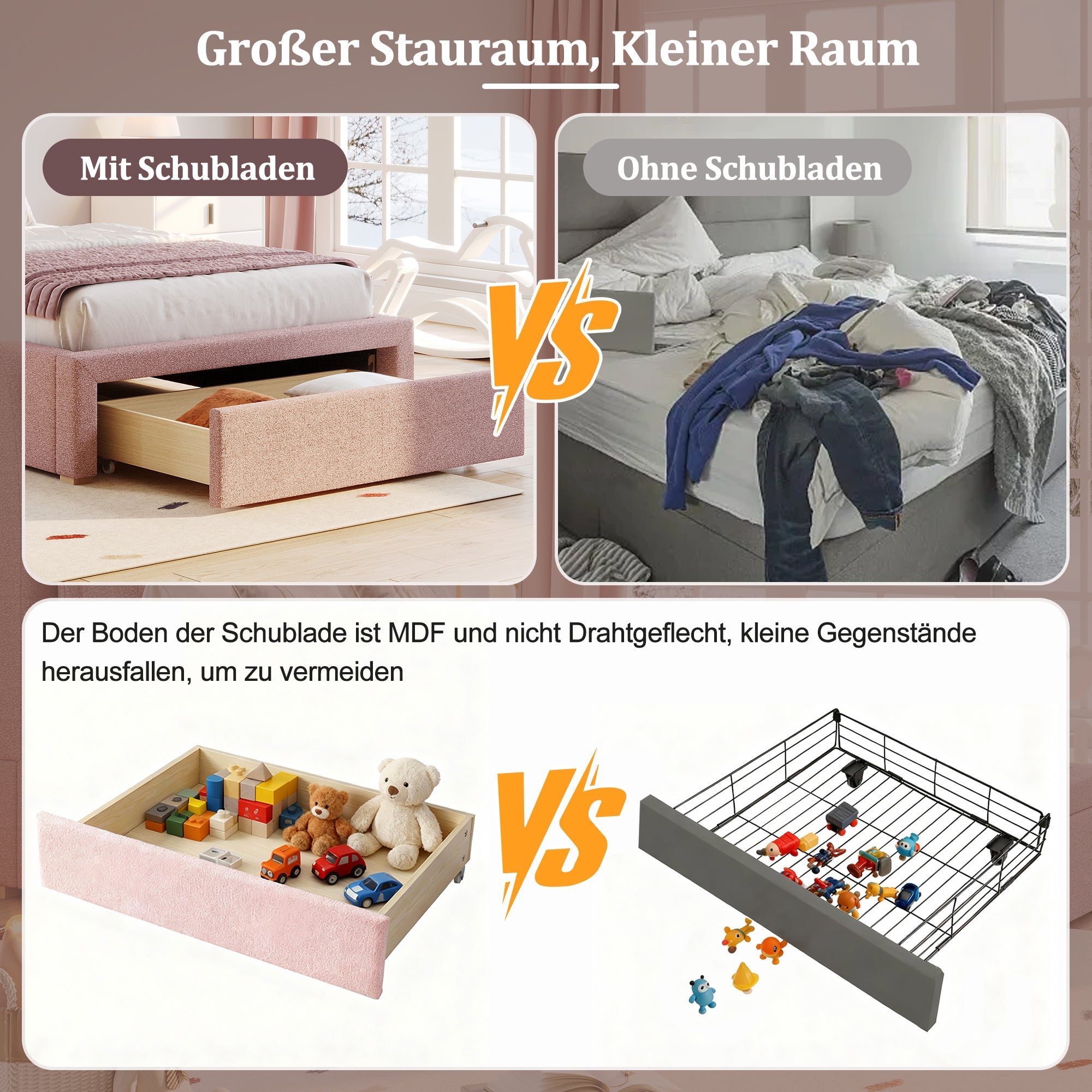 Upholstered Bed, Single/Children's Functional with Storage, Pink Chenille