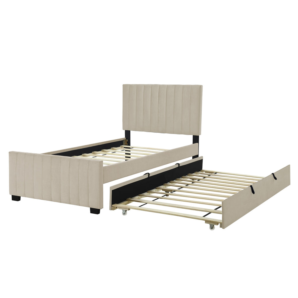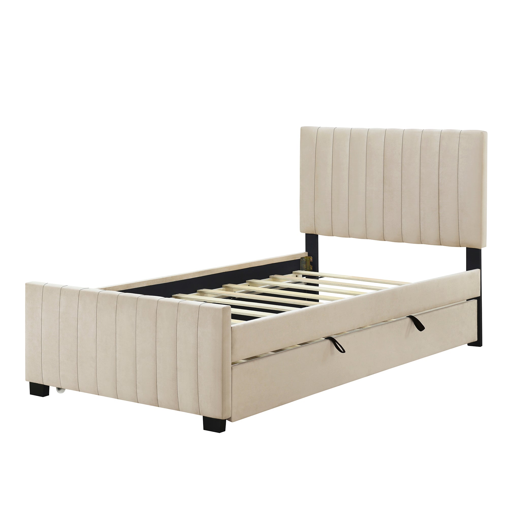 Upholstered Bed, Single with Pull-Out, 90 x 190 cm, Beige Velvet