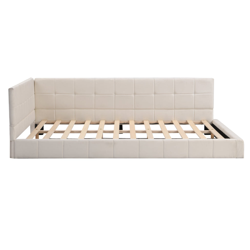 Upholstered Bed Sofa, 140x200 Multifunctional with Slatted Frame, Beige Velvet