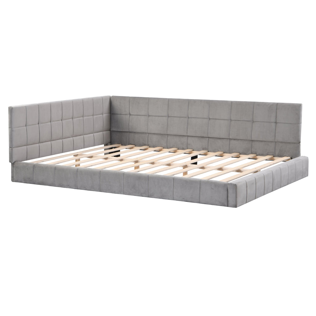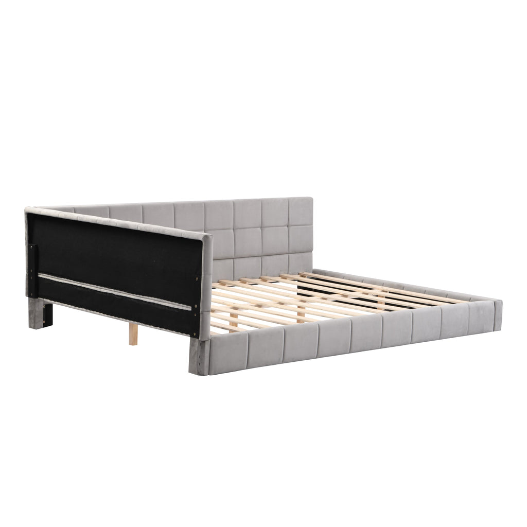 Upholstered Bed Sofa, 140x200 Multifunctional with Slatted Frame, Skin-Friendly Velvet Gray