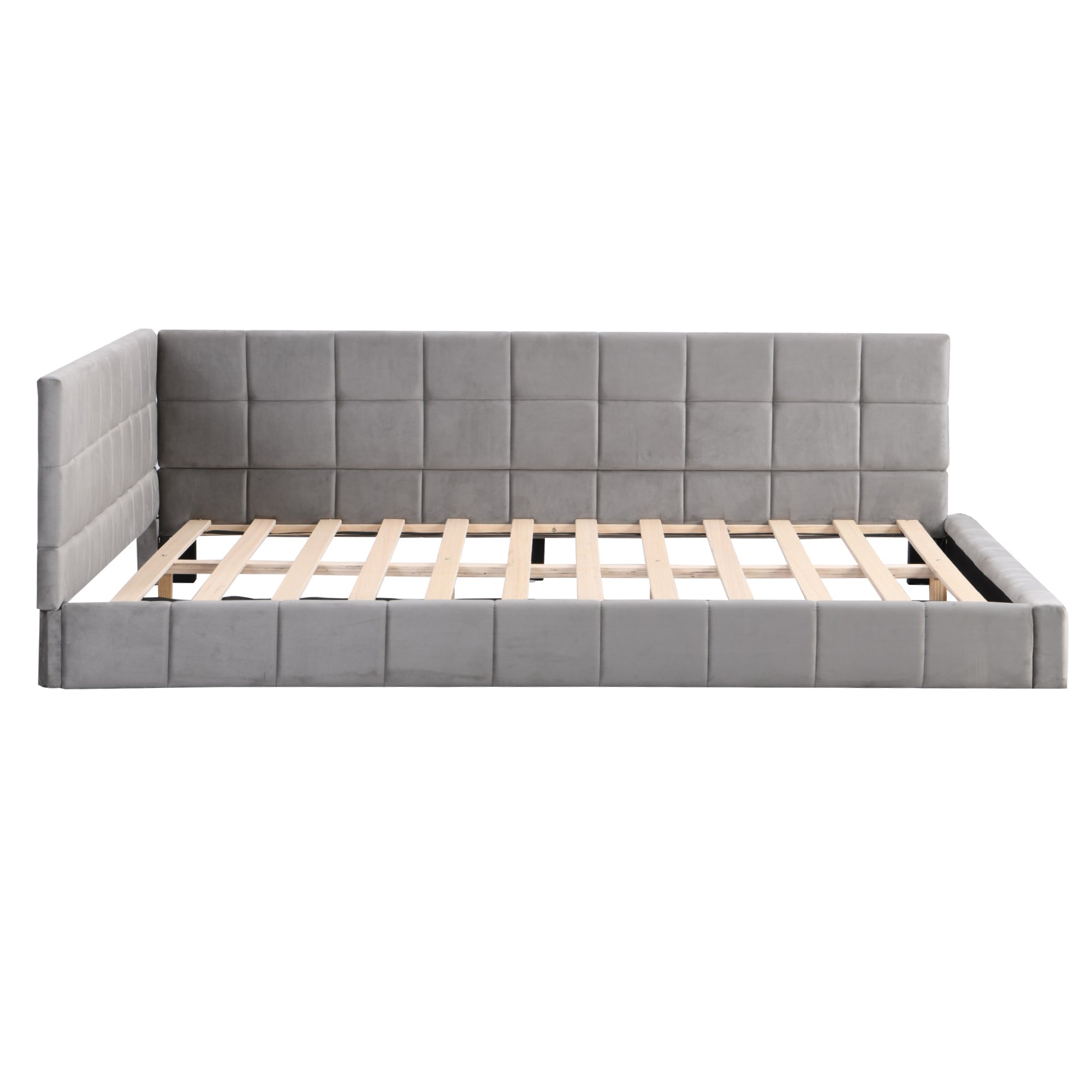 Upholstered Bed Sofa, 140x200 Multifunctional with Slatted Frame, Velvet Fabric Gray