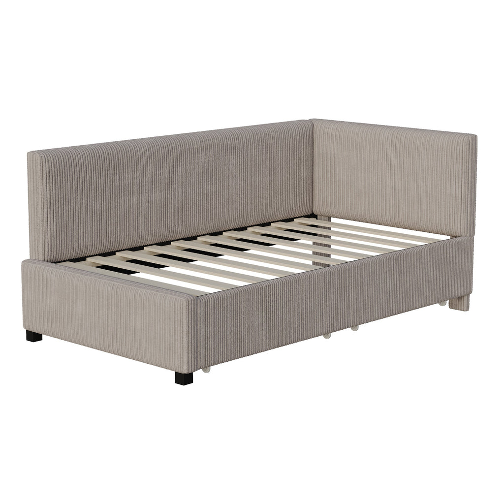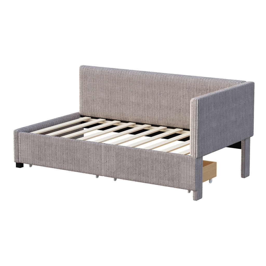 Upholstered Bed Sofa, 90x200 Multifunctional with 2 Storage Drawers, Gray Velvet