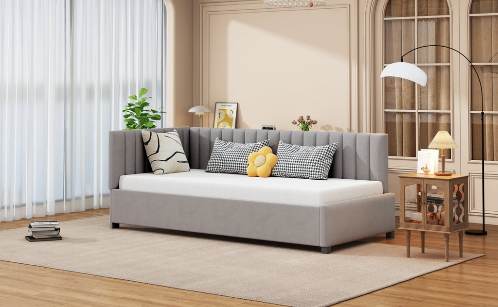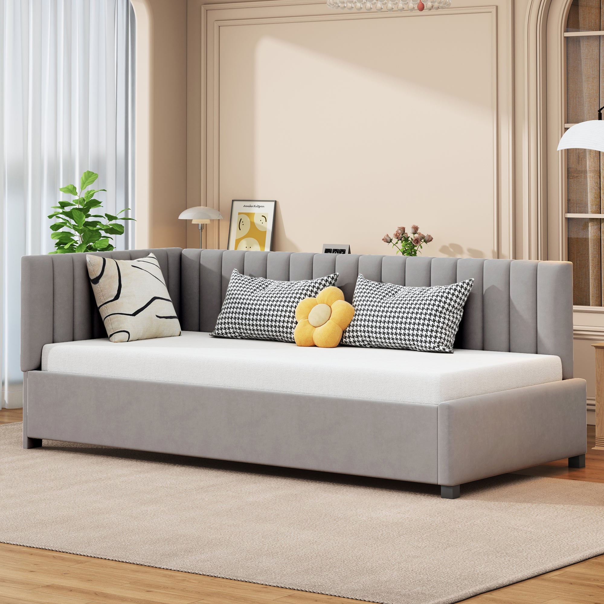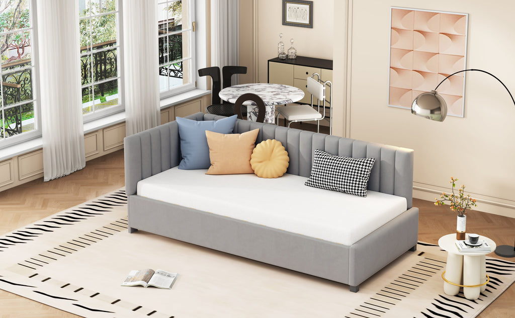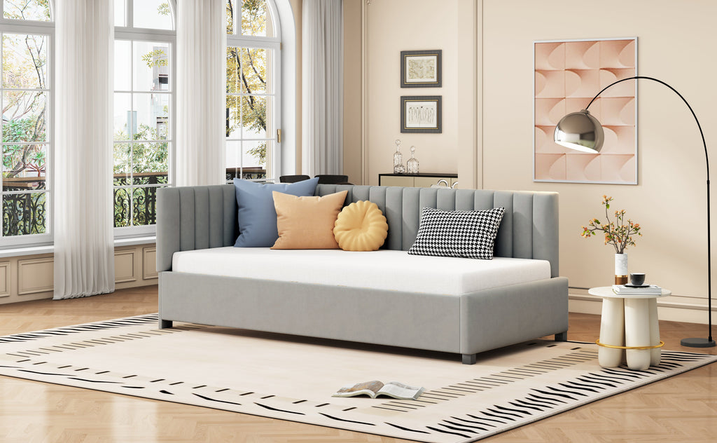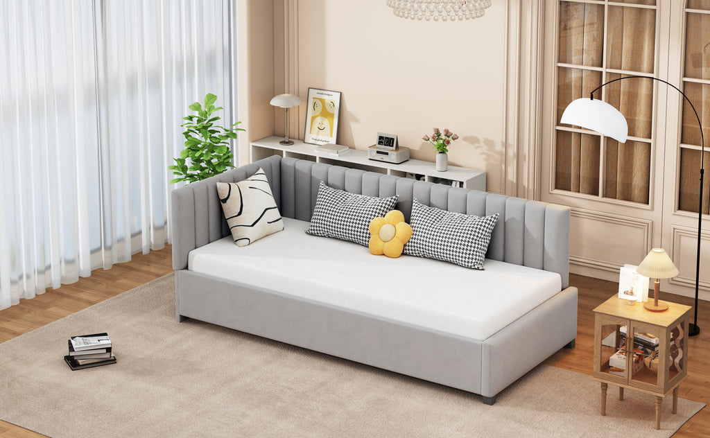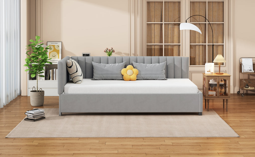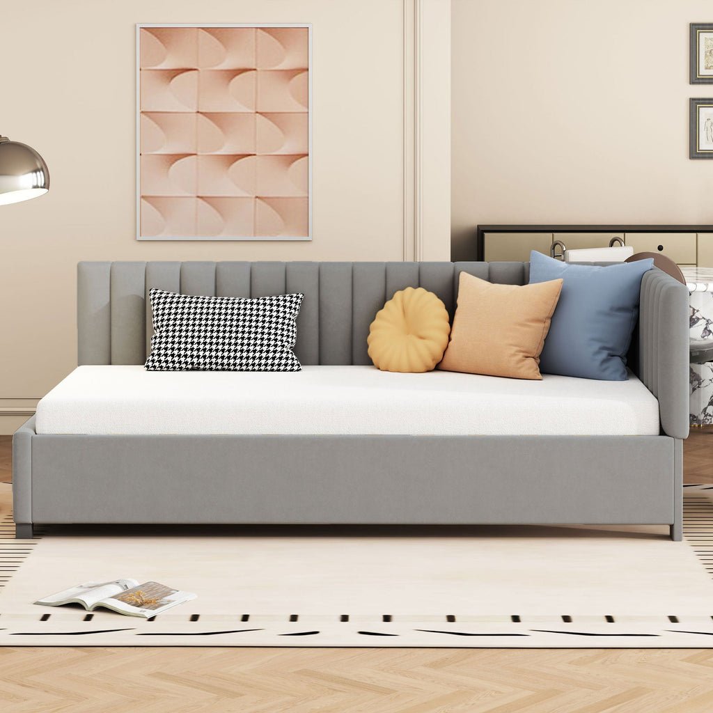 Upholstered Bed Sofa, 90x200 Multifunctional with Slatted Frame, Skin-Friendly Velvet Fabric Gray