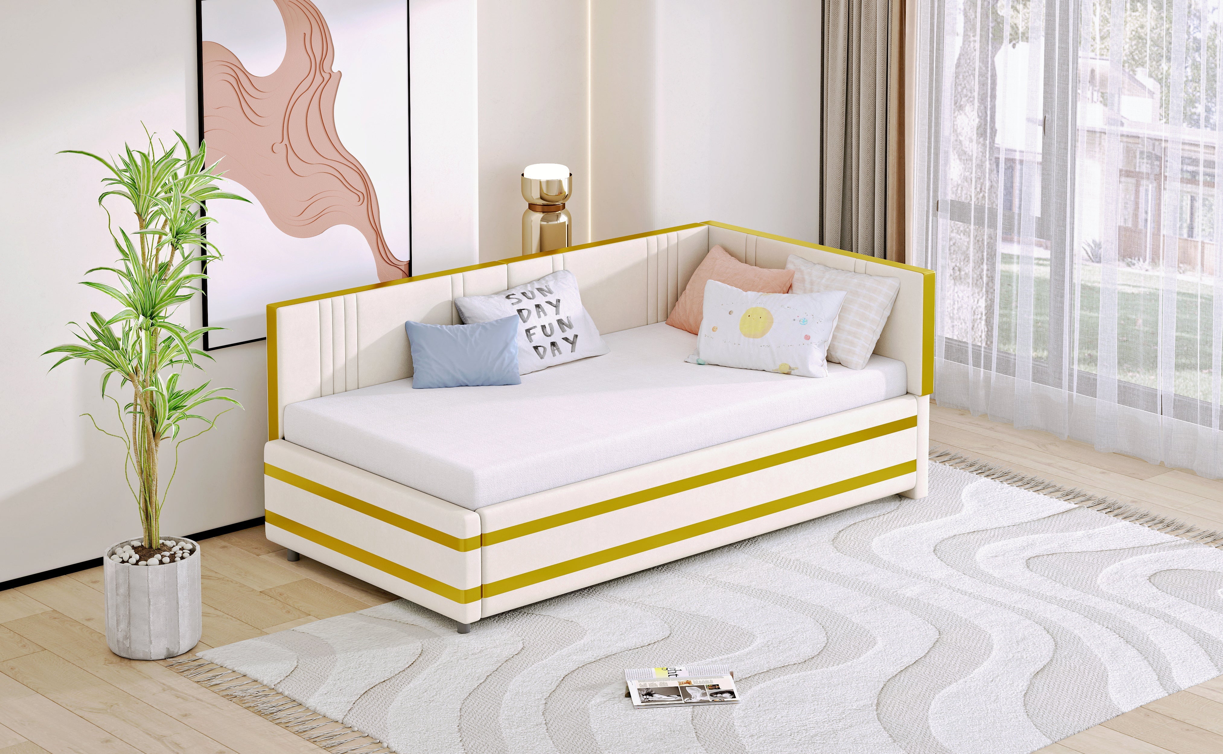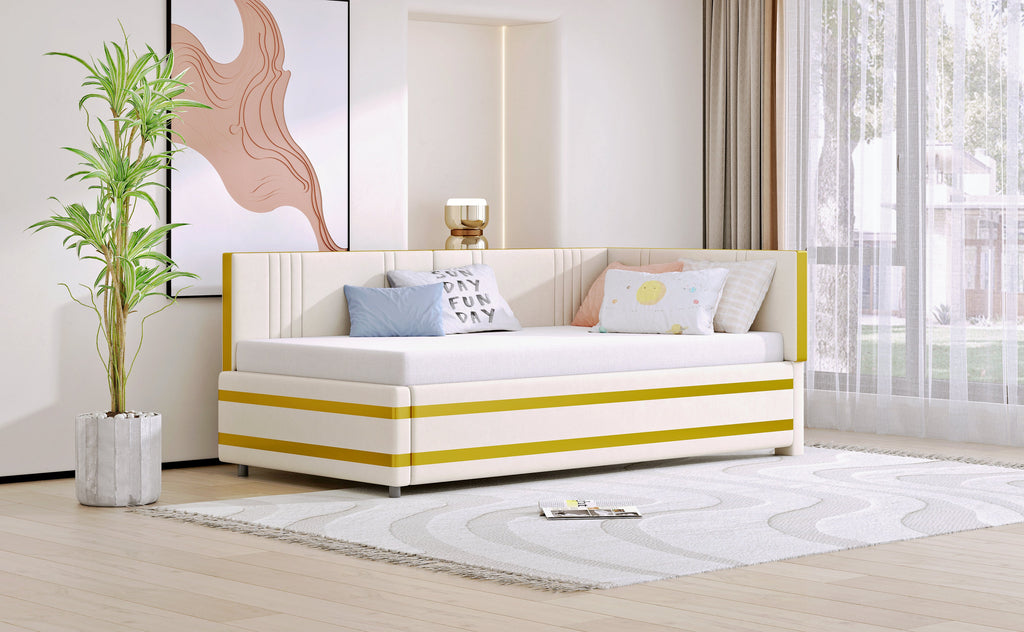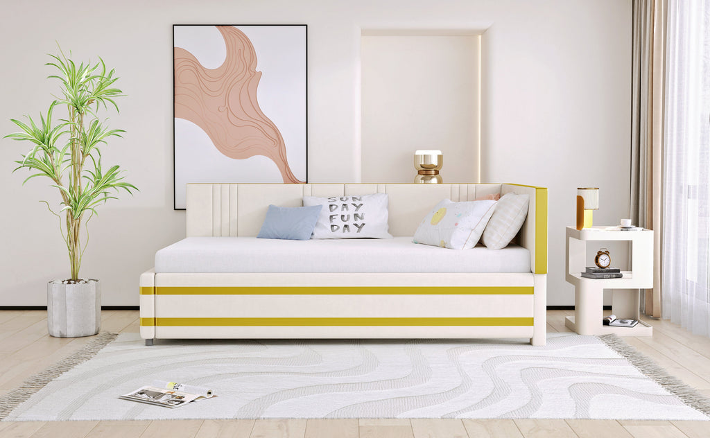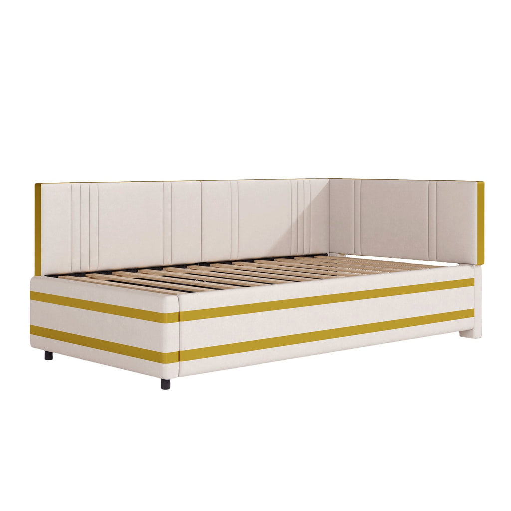 Upholstered Bed Sofa Bed 90*200 Multifunctional with Slatted Frame, Velvet Beige