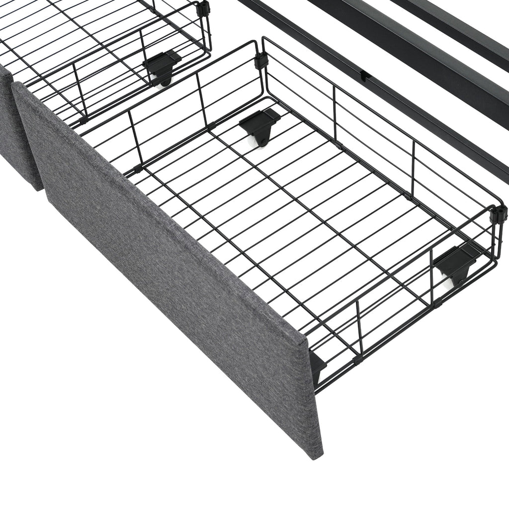 Upholstered Bed, USB Type-C, LED, Drawers, 160x200cm, Gray