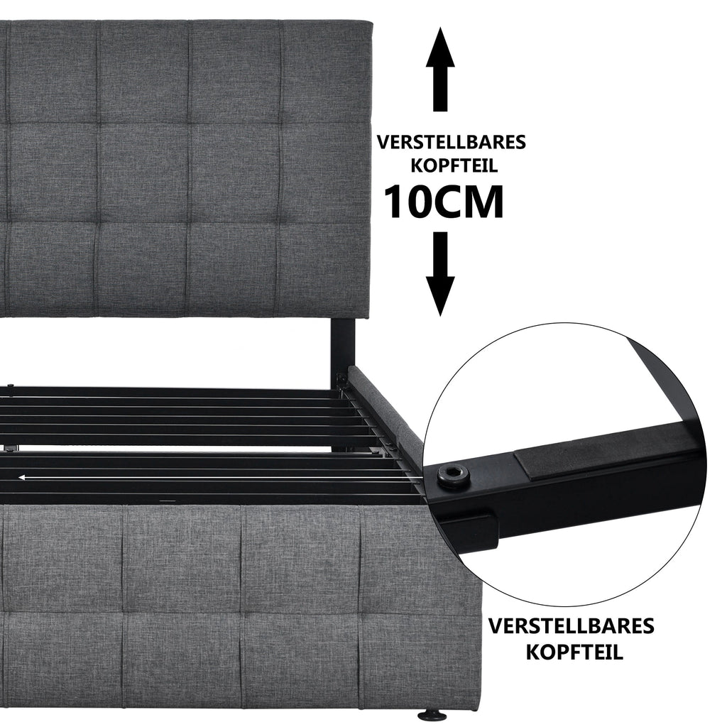 Upholstered Bed with 4 Drawers, Innerspring Mattress, Grey Linen