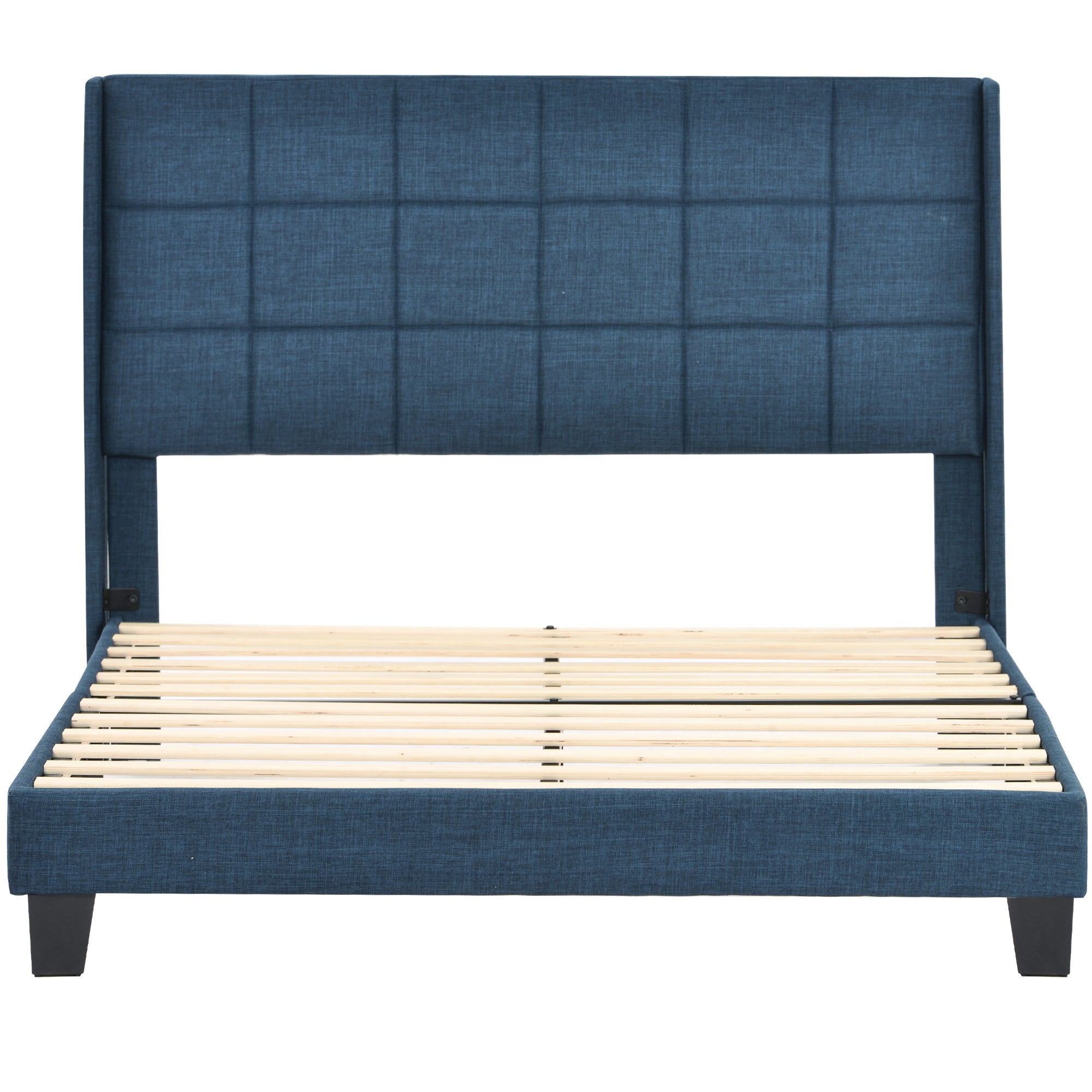Upholstered Bed with Headboard, 140x200cm, Blue Linen