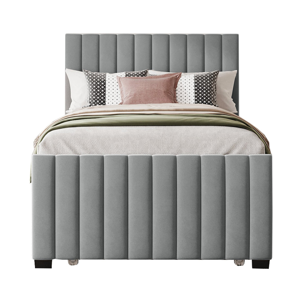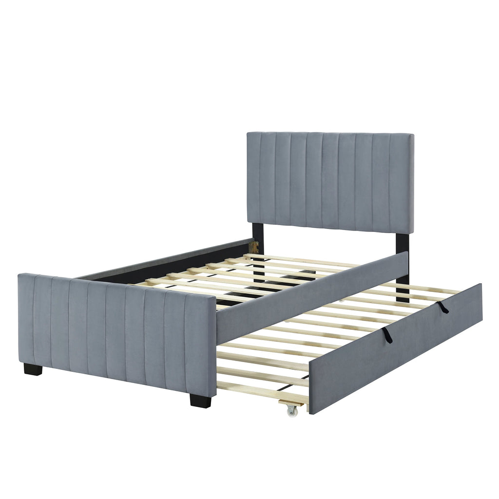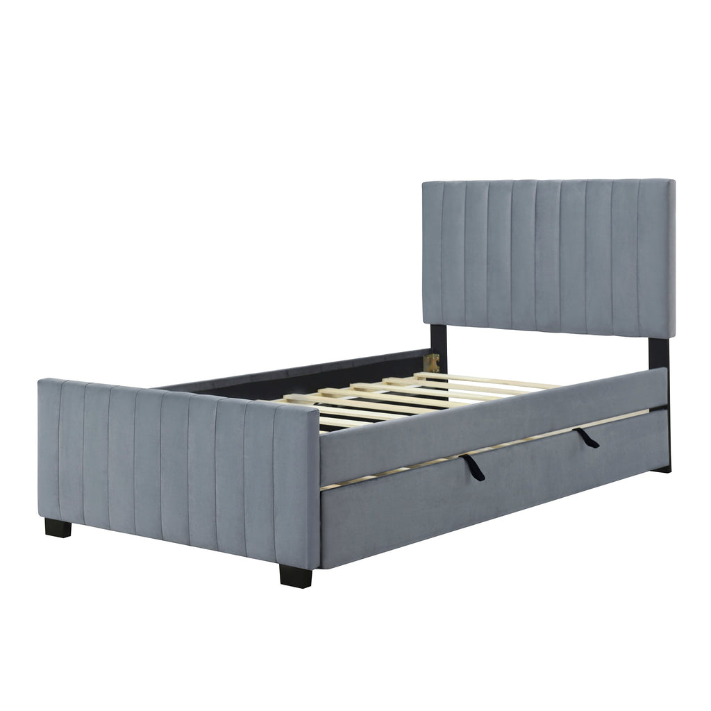 Upholstered Bed with Pull-Out, 90 x 190 cm Single, Grey Velvet