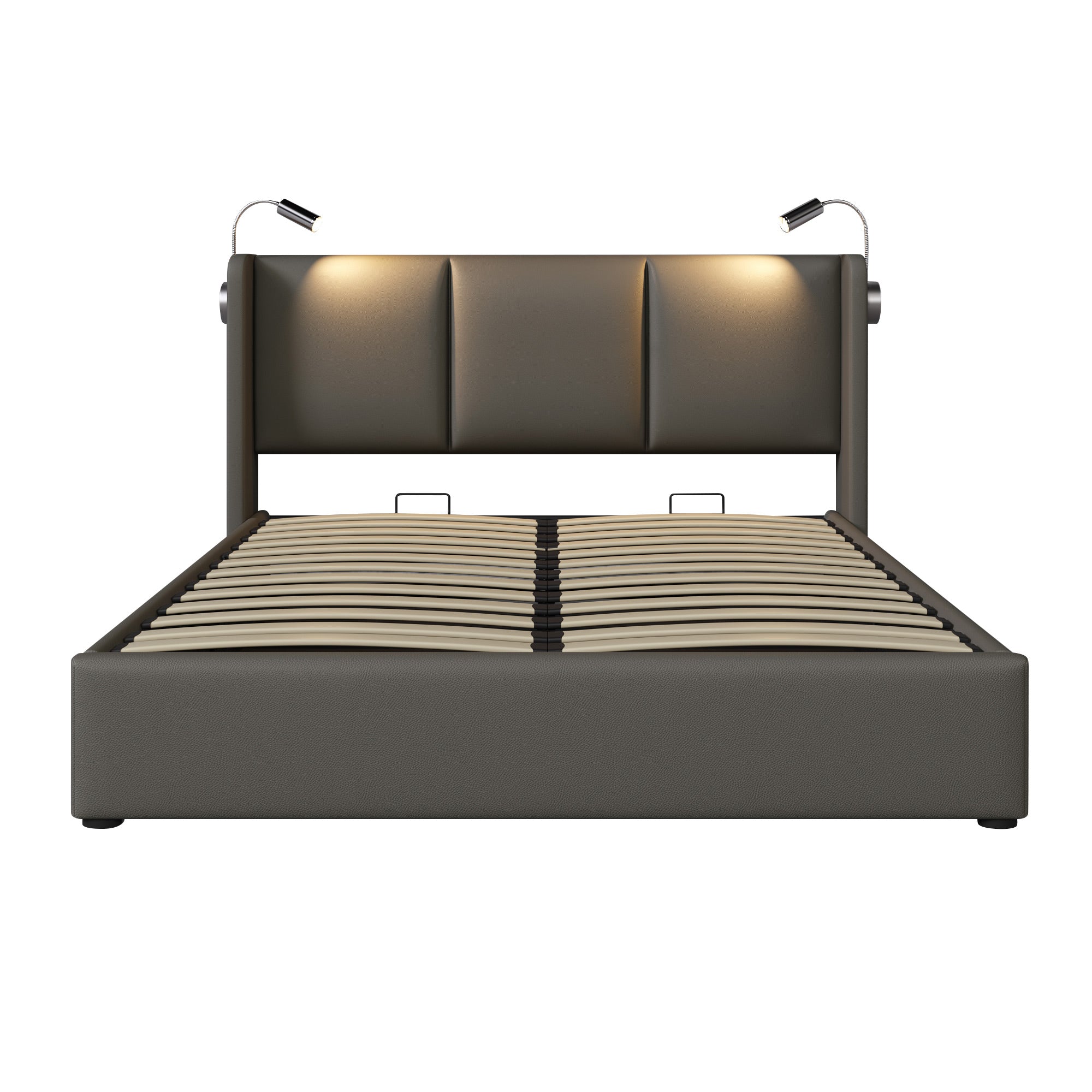 Upholstered Double Bed 160x200 Storage Reading Light Headboard PU