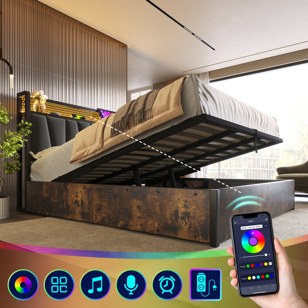 Package Contents: Bed frame, power outlets, and LED headboard.