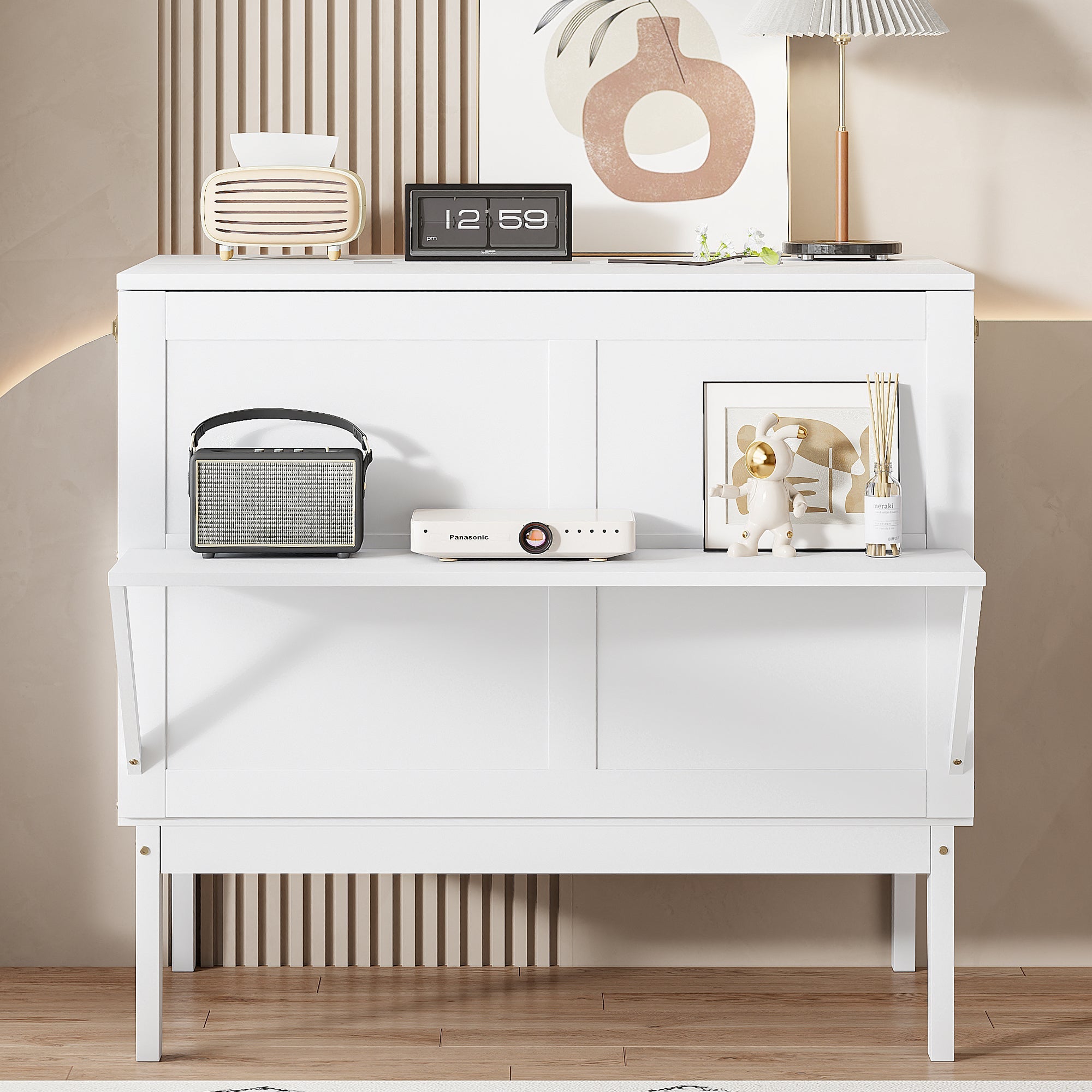 The unique transformable design is very popular with youth groups because it's easy to use and can be moved around instantly, making it ideal for single rooms. The white color blends well with any room's decor and is very practical, as it saves space and can be used as a counter to decorate the room. The recommended mattress height is approximately 12-14 cm.