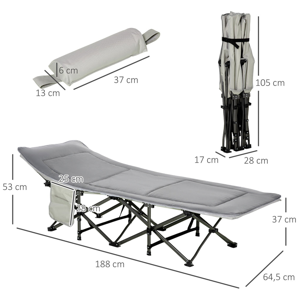 Camping Bed Folding with Pillow, Side Pocket, 150kg, Light Grey