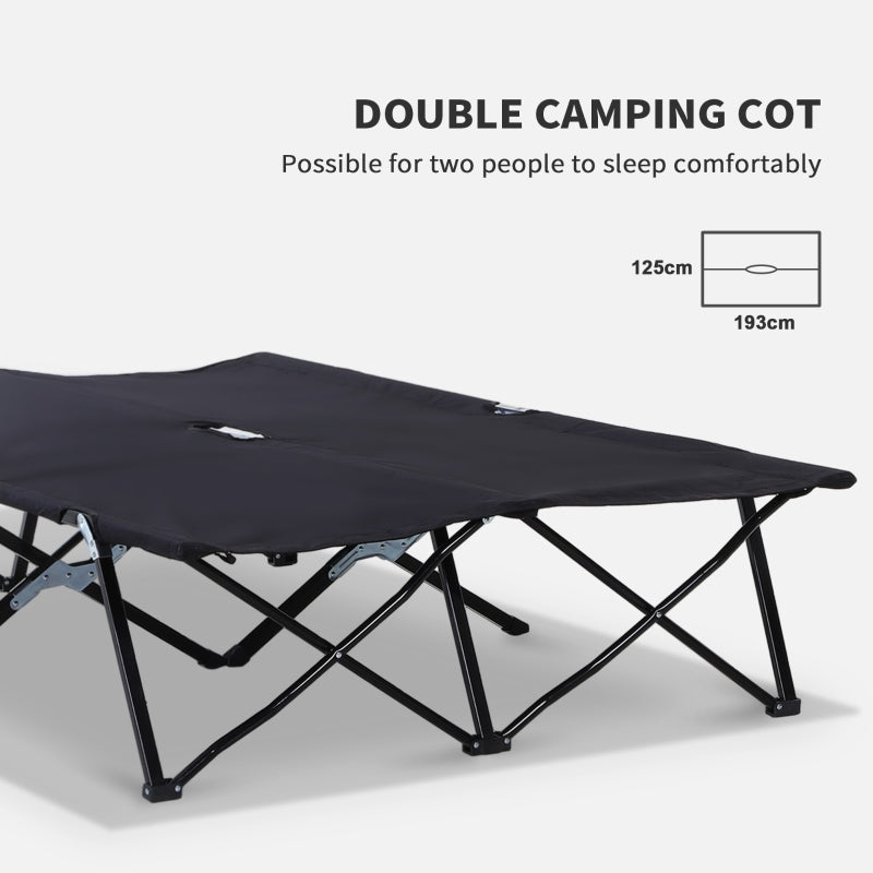 Double Camping Cot Bed Folding Portable with Bag, Black