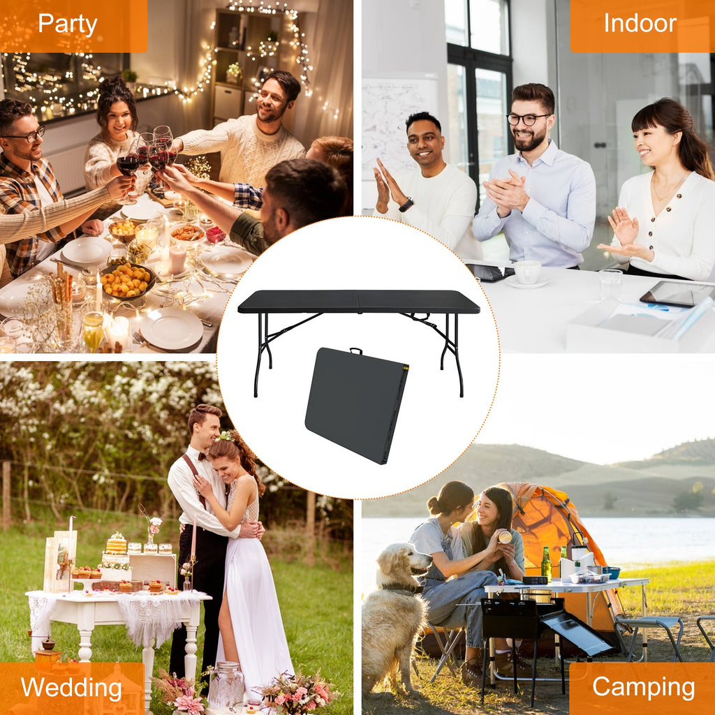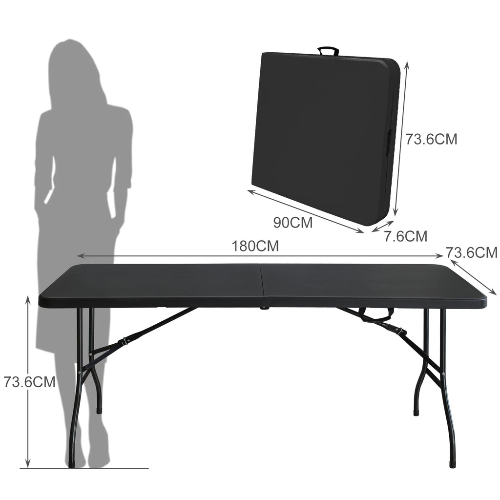 Folding Table 180cm, Portable Heavy Duty Multi-Functional, Black