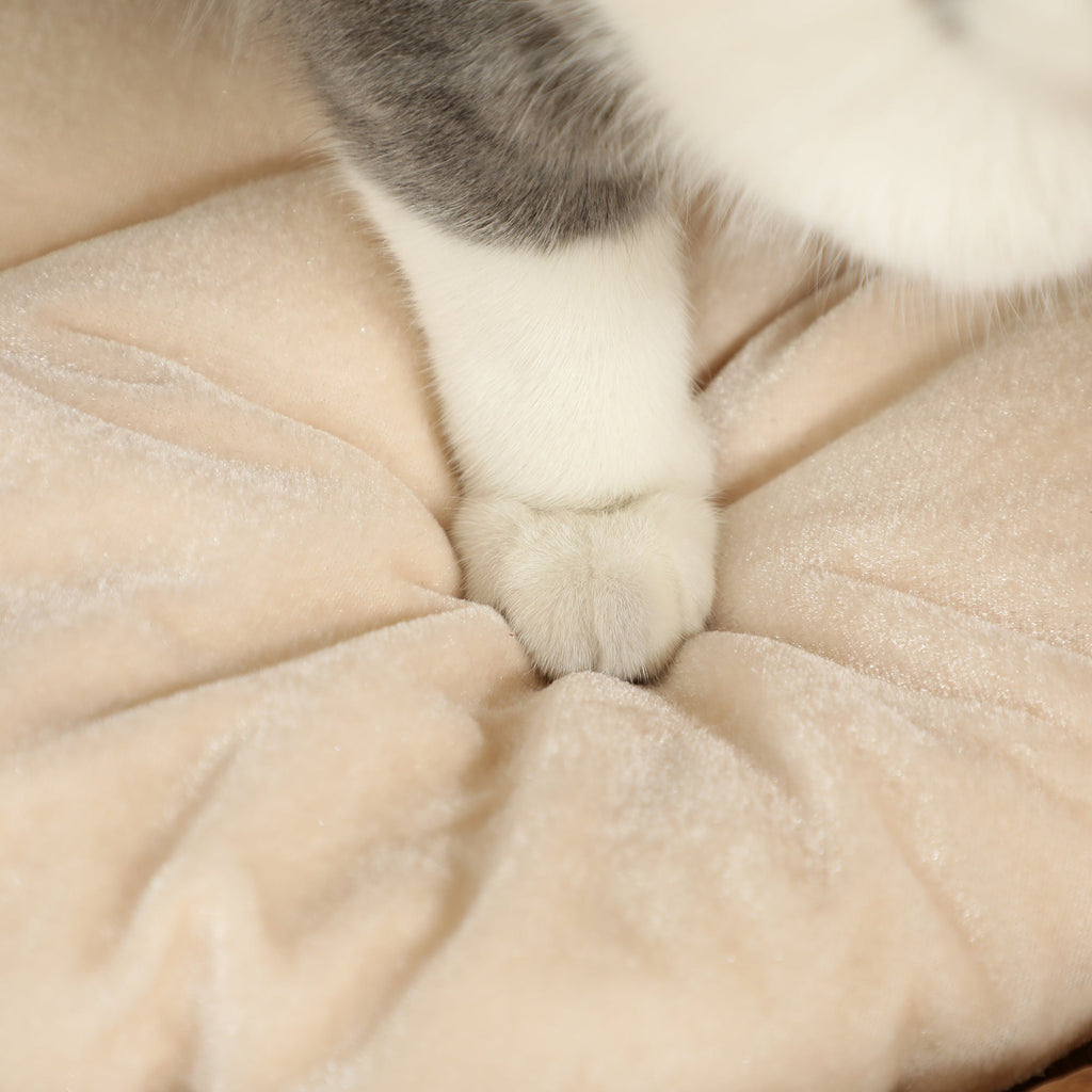 Cozy retreat: Equipped with two cat caves, this cat tree offers ideal hiding places for snuggling up and sleeping. Each cave features a removable cushion, while the upper section serves as a viewing platform.