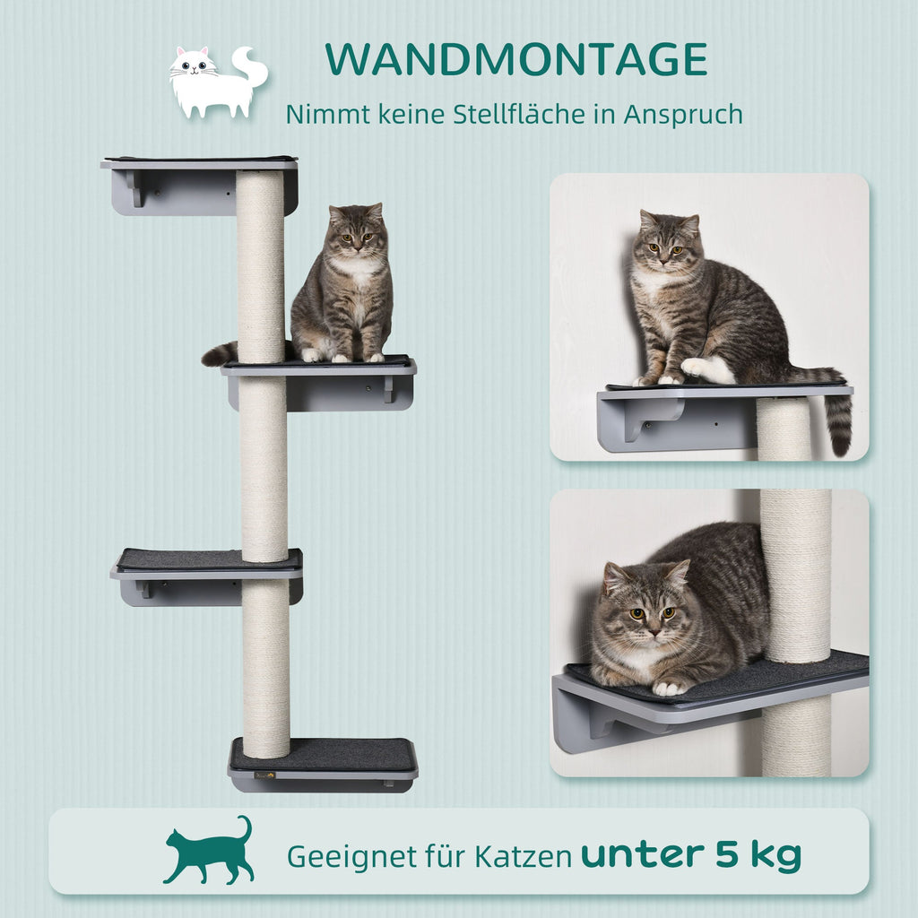 Wall-Mounted Cat Scratching Post with Climbing Wall, Wood in Light Grey Beige