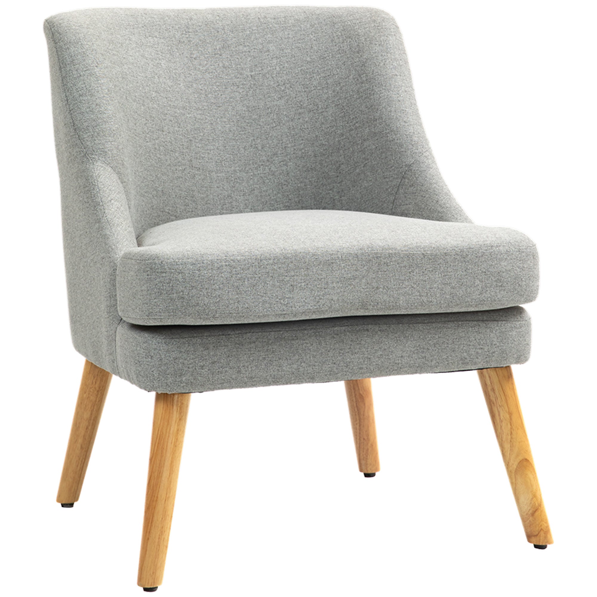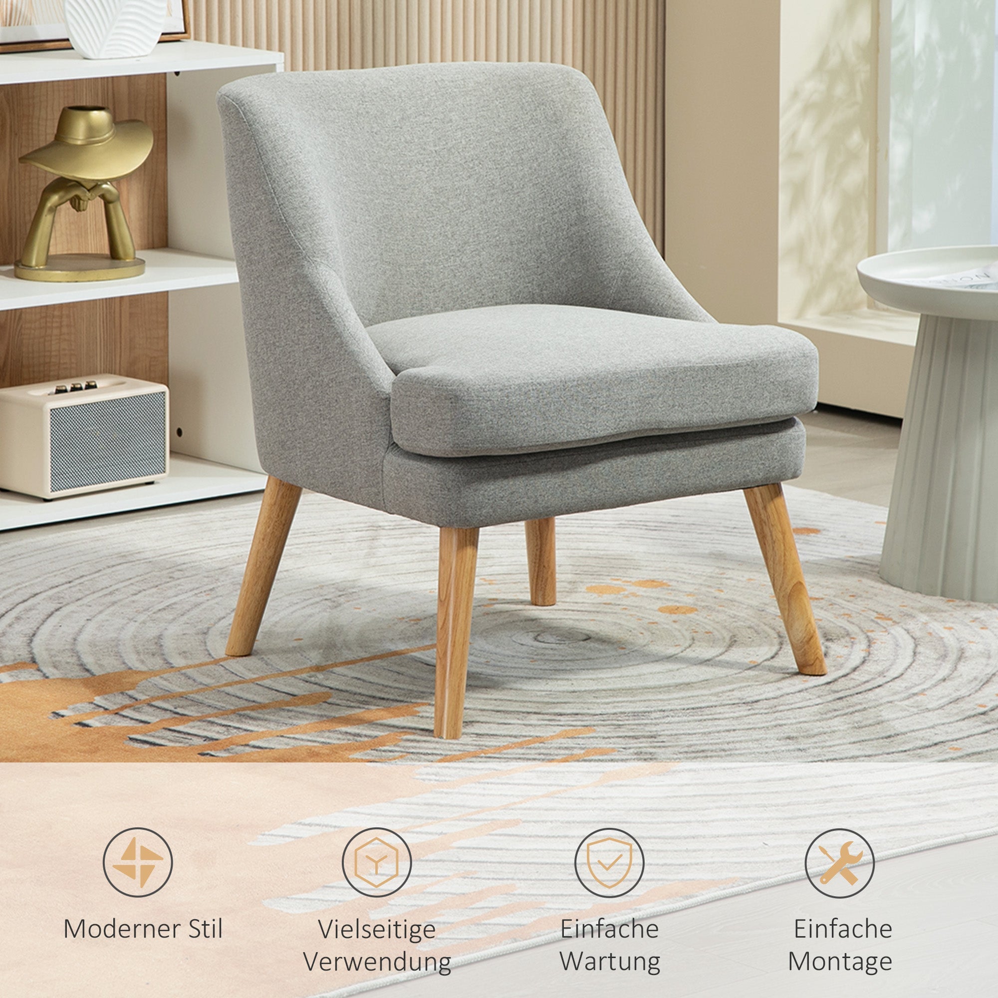 Armchair Lounge Chair, Upholstered with Armrest, Wooden Legs, Light Grey
