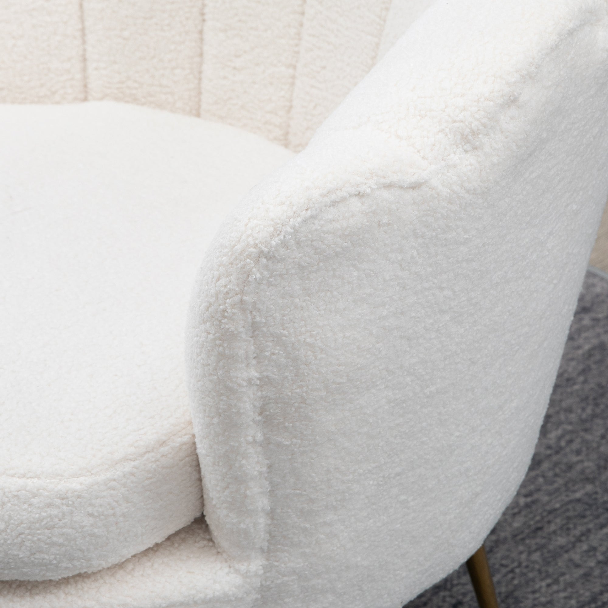 Armchair, Upholstered Shell-Shaped Recliner, Fleece, White