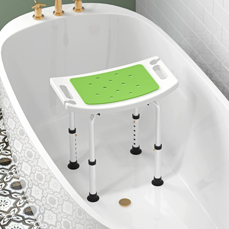Bath Stool Chair, 6-Level Height Adjustable Non-Slip Padded Seat, Aluminium Green