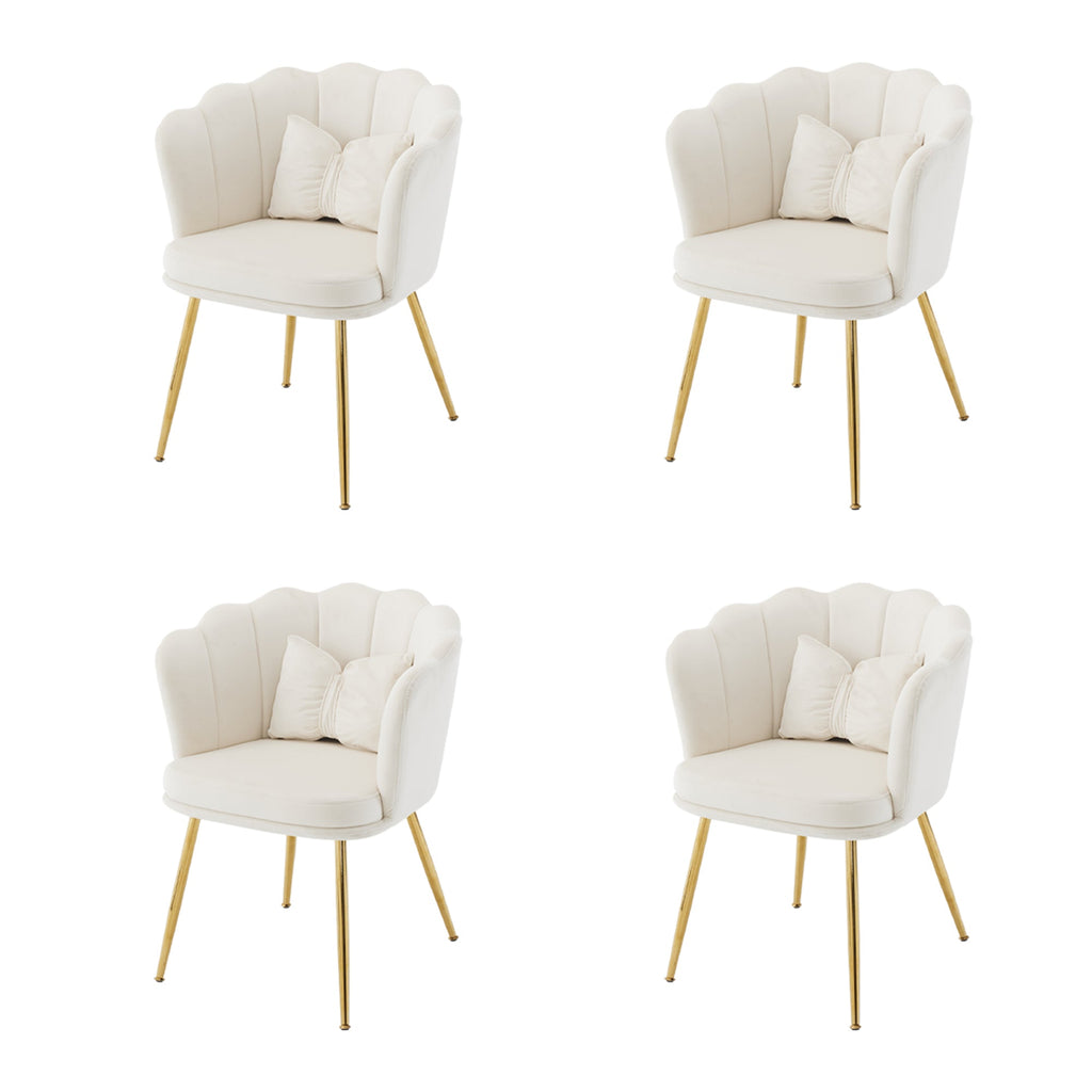 Chairs, 4 Modern Velvet Petal Back Upholstered with Gold Metal Legs and Butterfly Cushions, Velvet